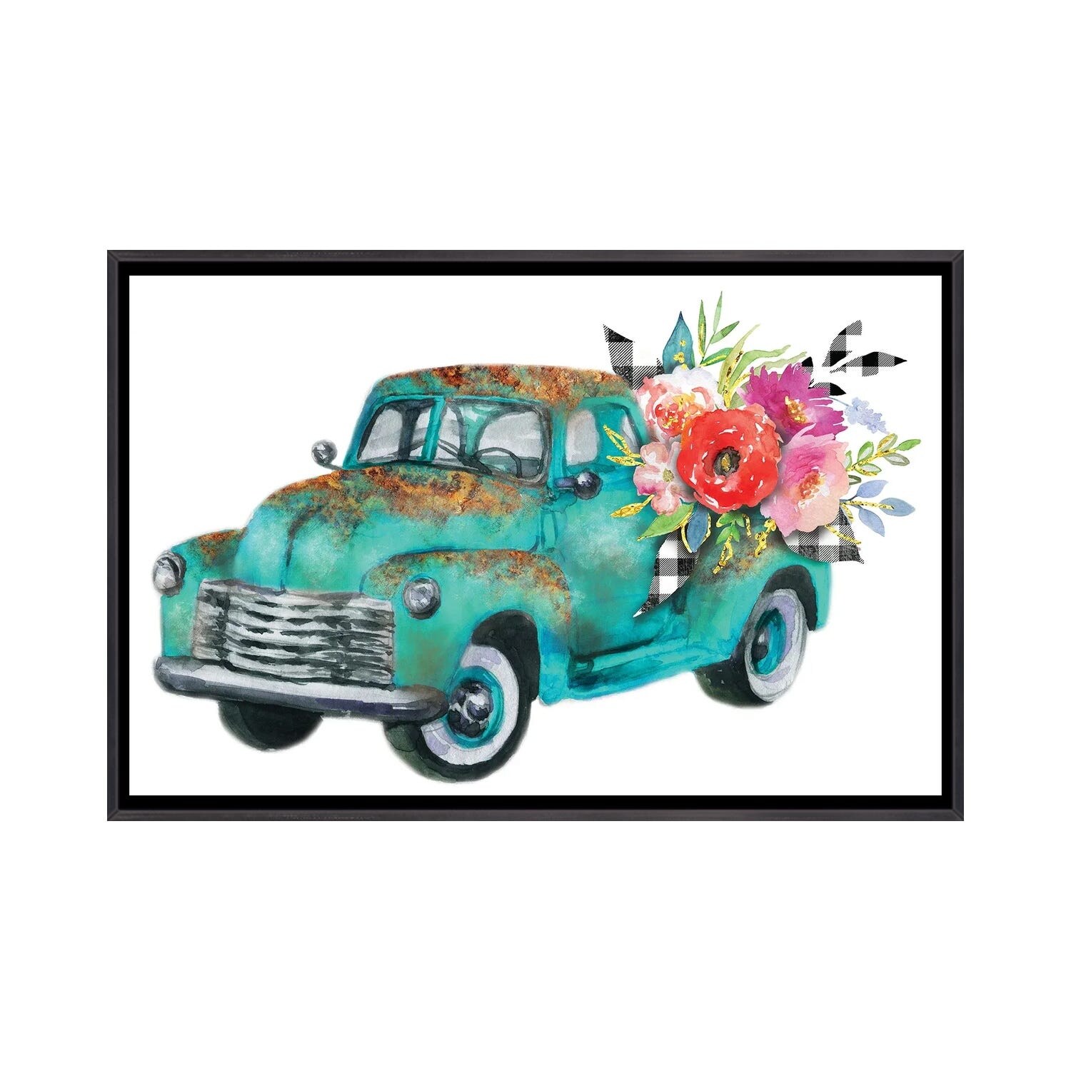 iCanvas "Spring Turquoise Flower Truck" by Ephrazy Graphics Framed
