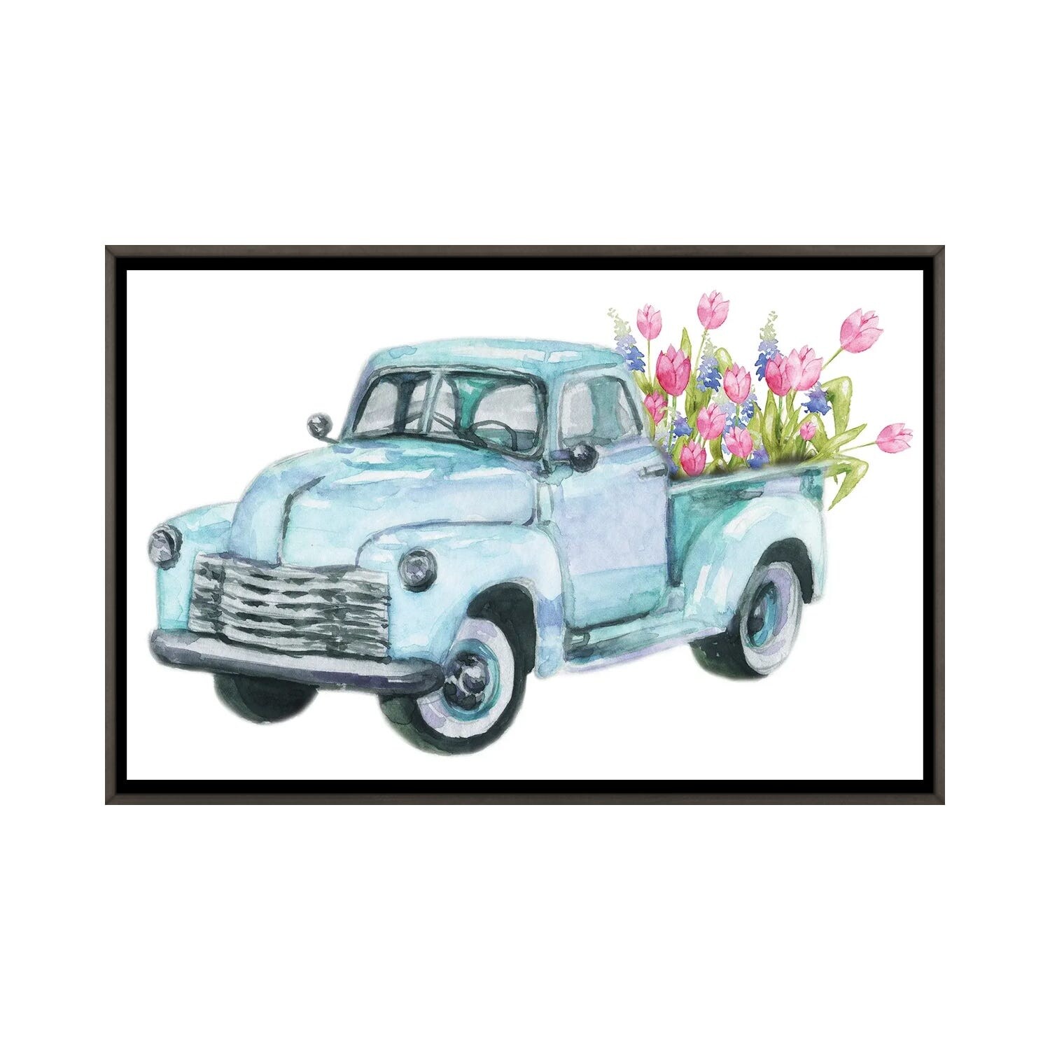 iCanvas "Spring Flower Teal Blue Truck" by Ephrazy Graphics Framed