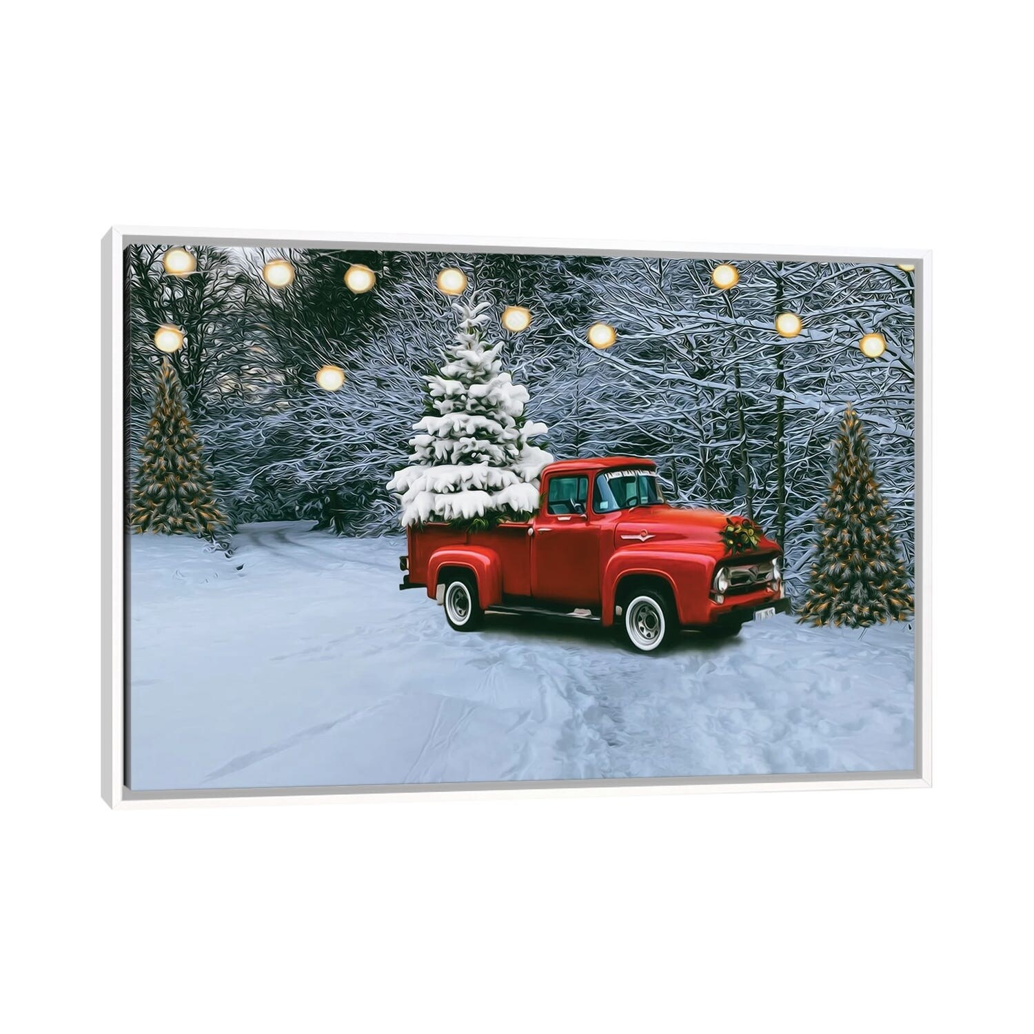 iCanvas "Red Trucks in the Christmas Woods" by Ievgeniia Bidiuk Framed Canvas Print