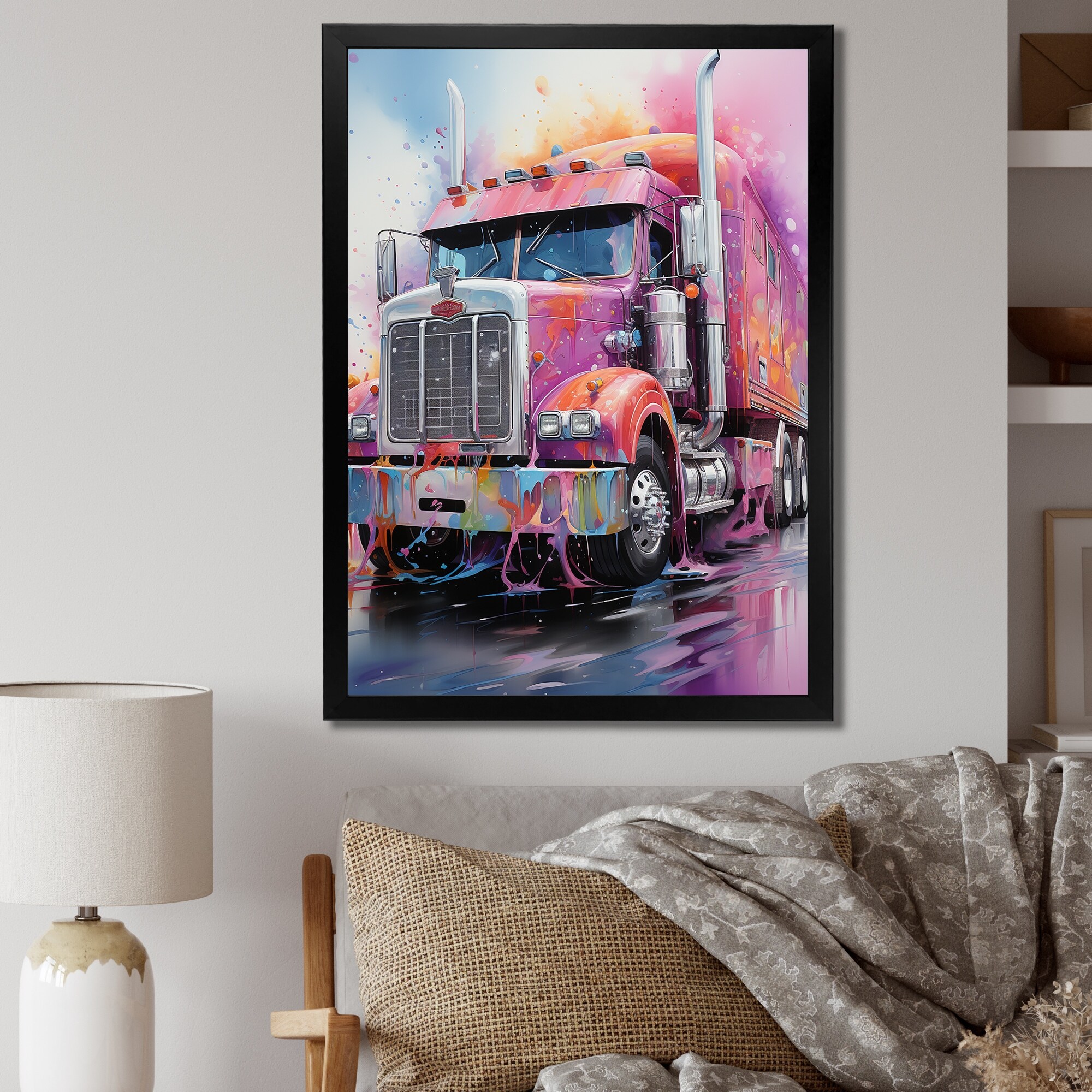 Designart "Pink Semi Truck Showstopper" Truck Framed Wall Art Prints