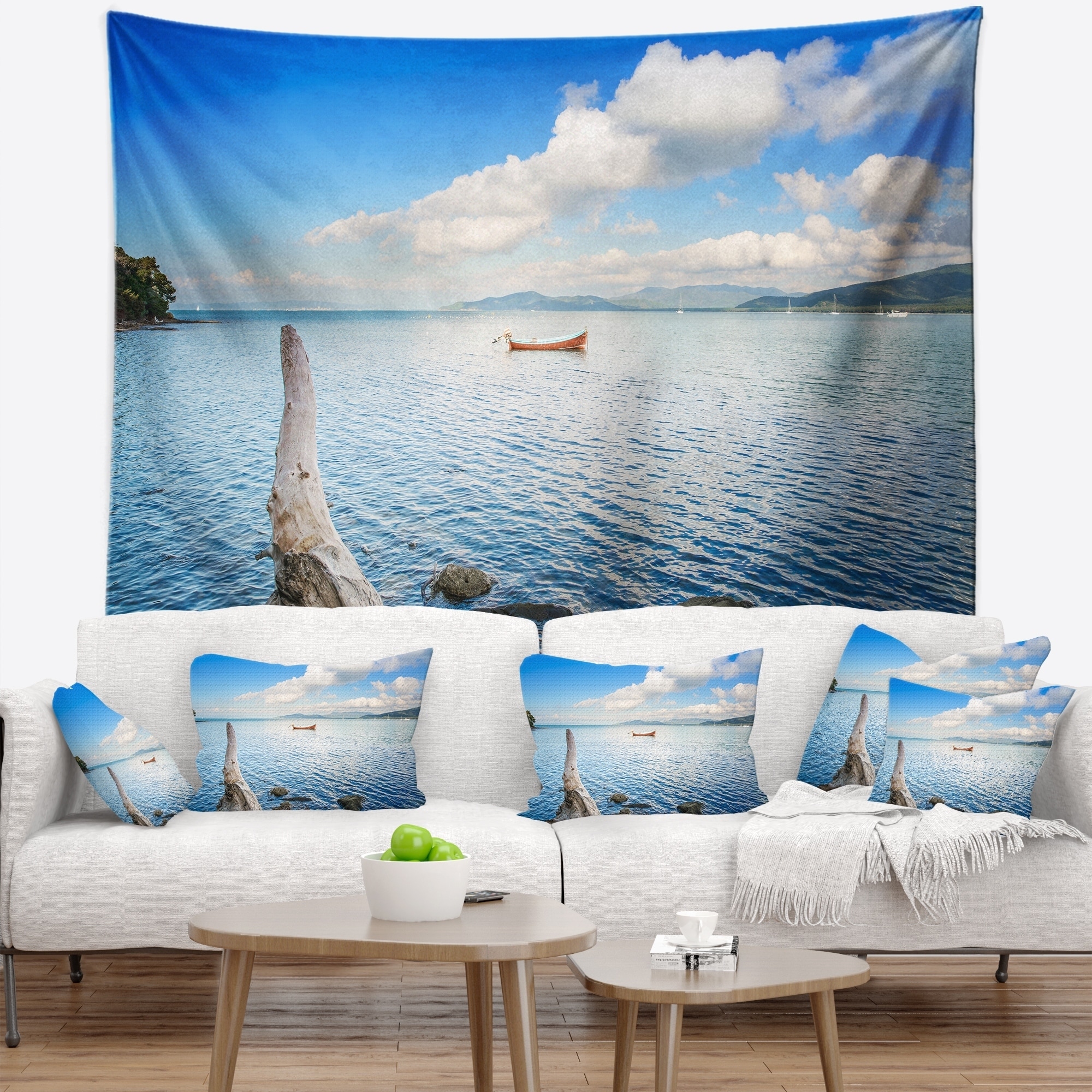 Designart 'Small Wooden Boat and Tree Trunk' Seashore Wall Tapestry