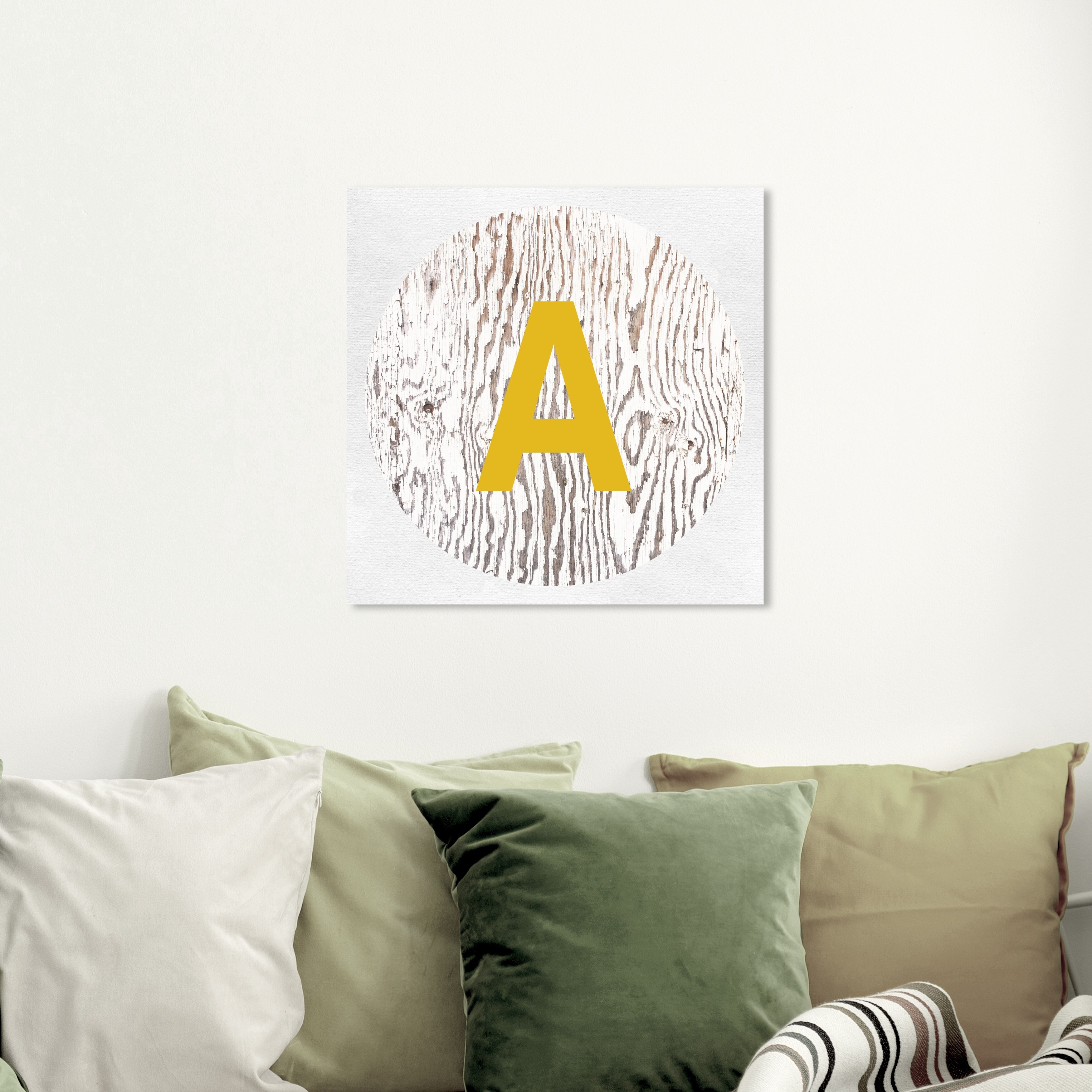 Oliver Gal 'Tree Trunk Monogram' Typography and Quotes Wall Art Canvas Print Letters and Calligraphy - Yellow, White