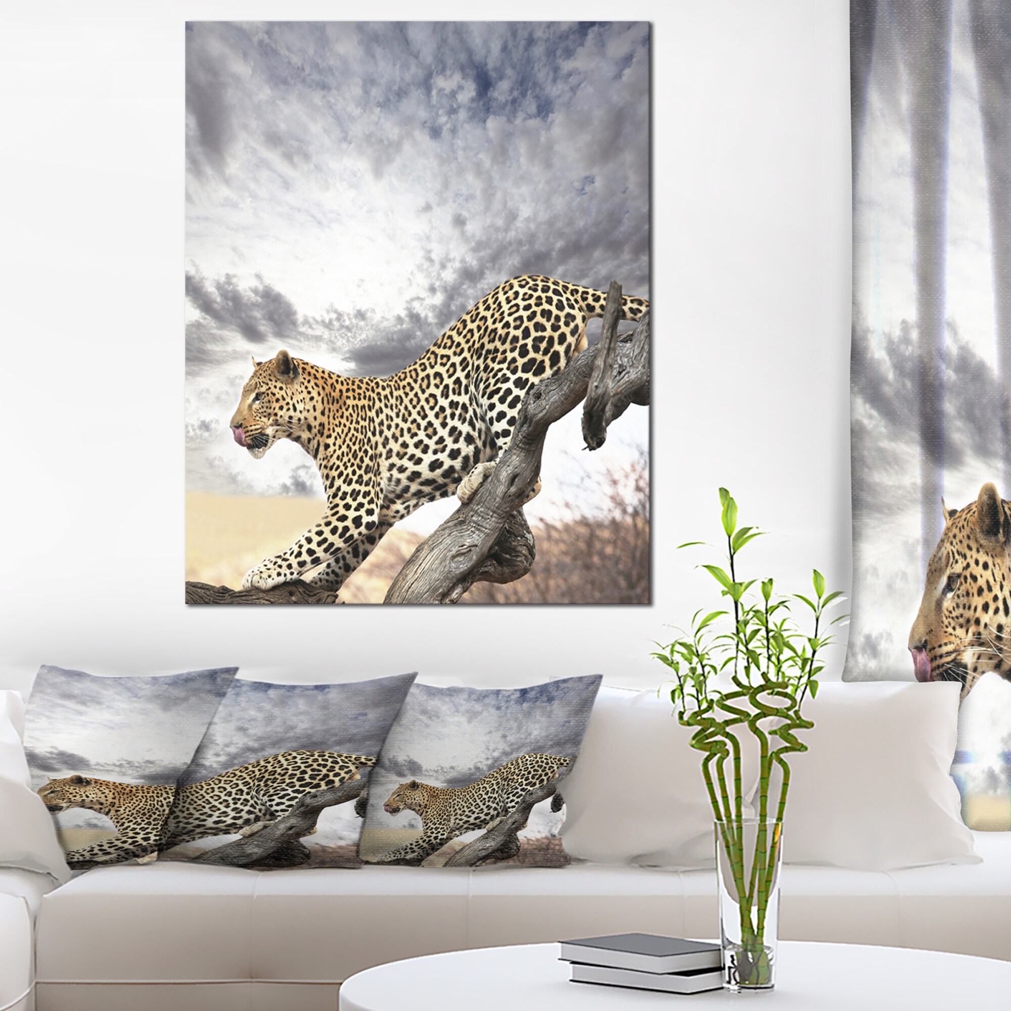Designart "Leopard Taking Rest on Tree Trunks" Extra Large African Canvas Art Print