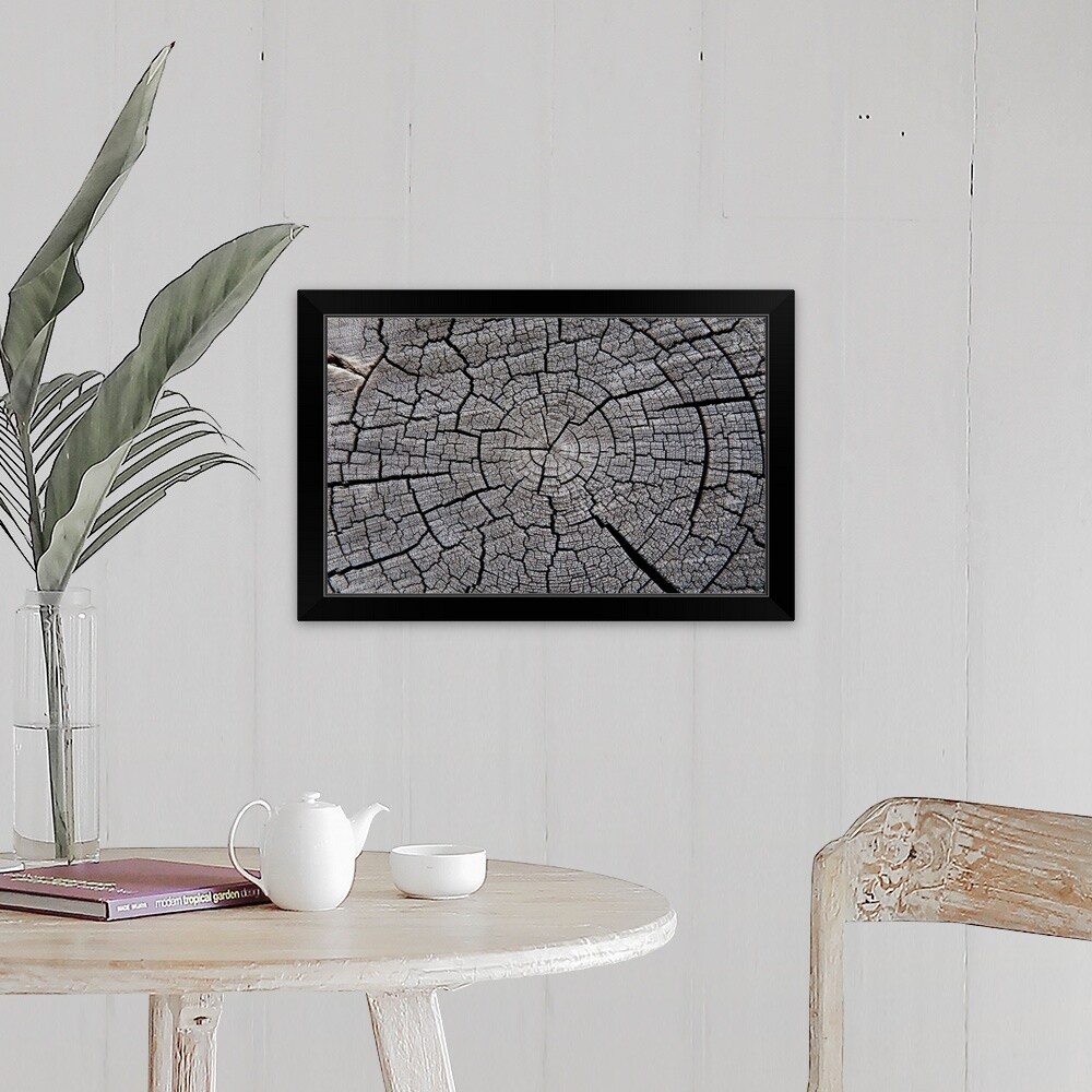 "Trunk of a fallen tree after fire in Yellowstone National Park" Black Framed Print