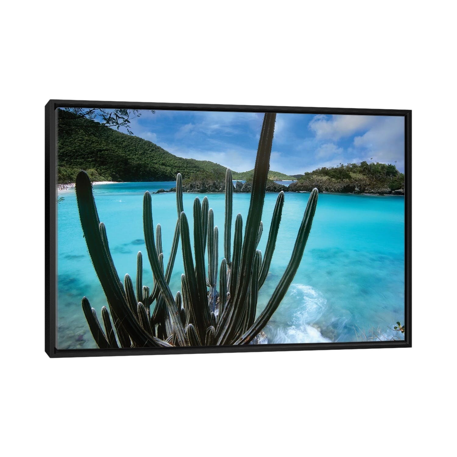 iCanvas "Cactus Growing Along Trunk Bay, Virgin Islands National Park, Virgin Islands" by Tim Fitzharris Framed Canvas Print