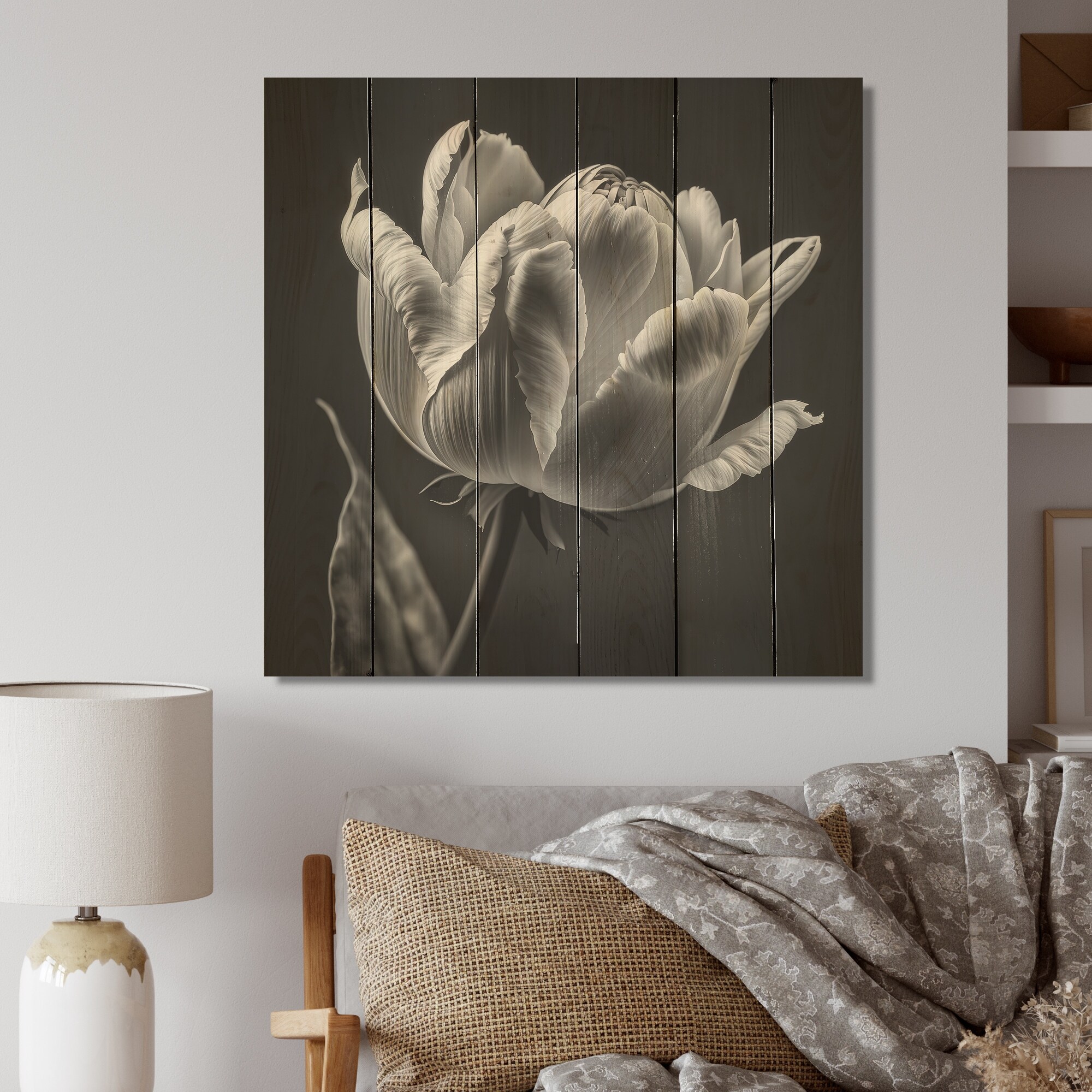 Designart 'Close-up Of Black And White Tulip II' Floral Tulip Wood Wall Art - Natural Pine Wood