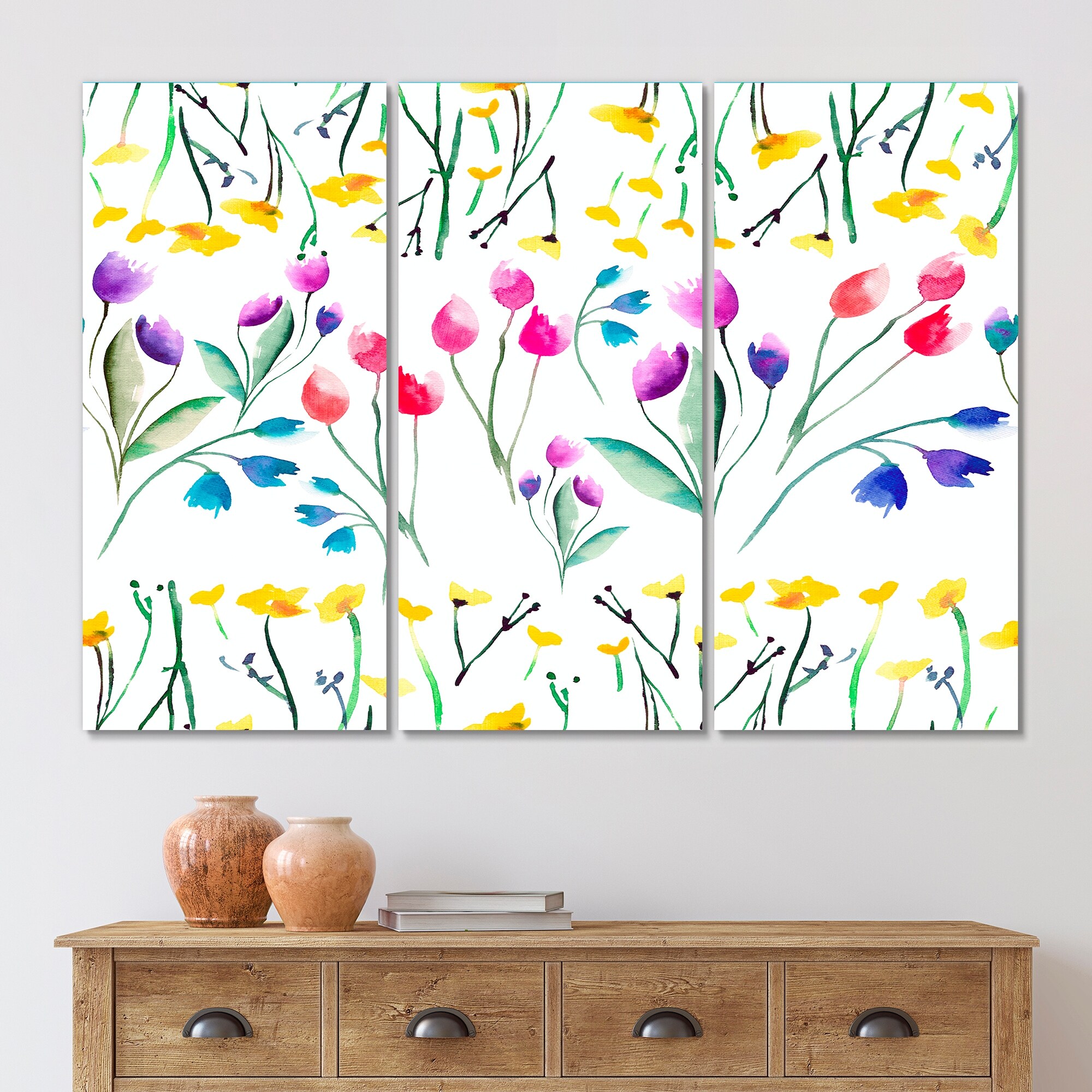 Designart "Yellow Wildflowers And Red Pink Violet Tulips" Patterned Canvas Wall Art Print