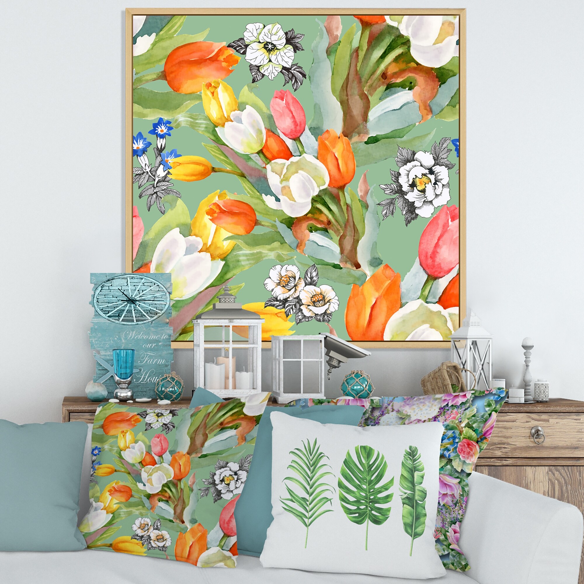 Designart "Bouquet Of Tulip And Cotton" Traditional Framed Art Print