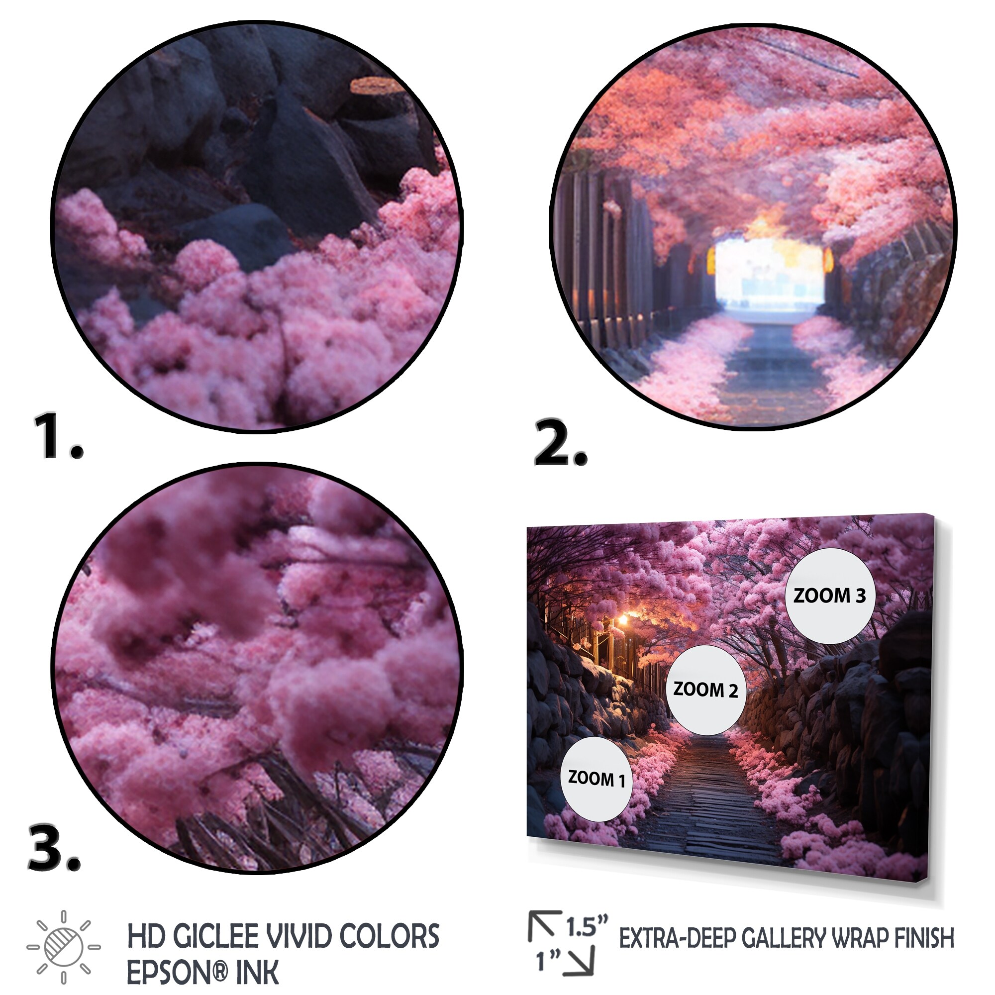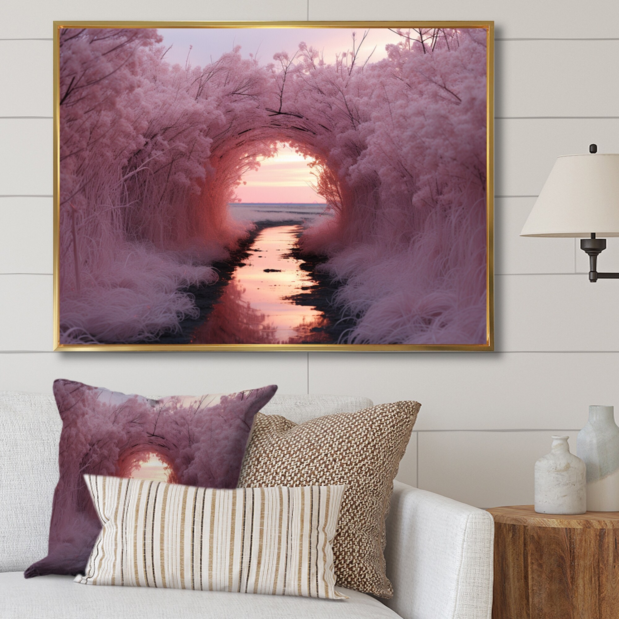 Designart "Pink Floral Tunnel Tranquil Twilight" Tunnels Framed Canvas Print