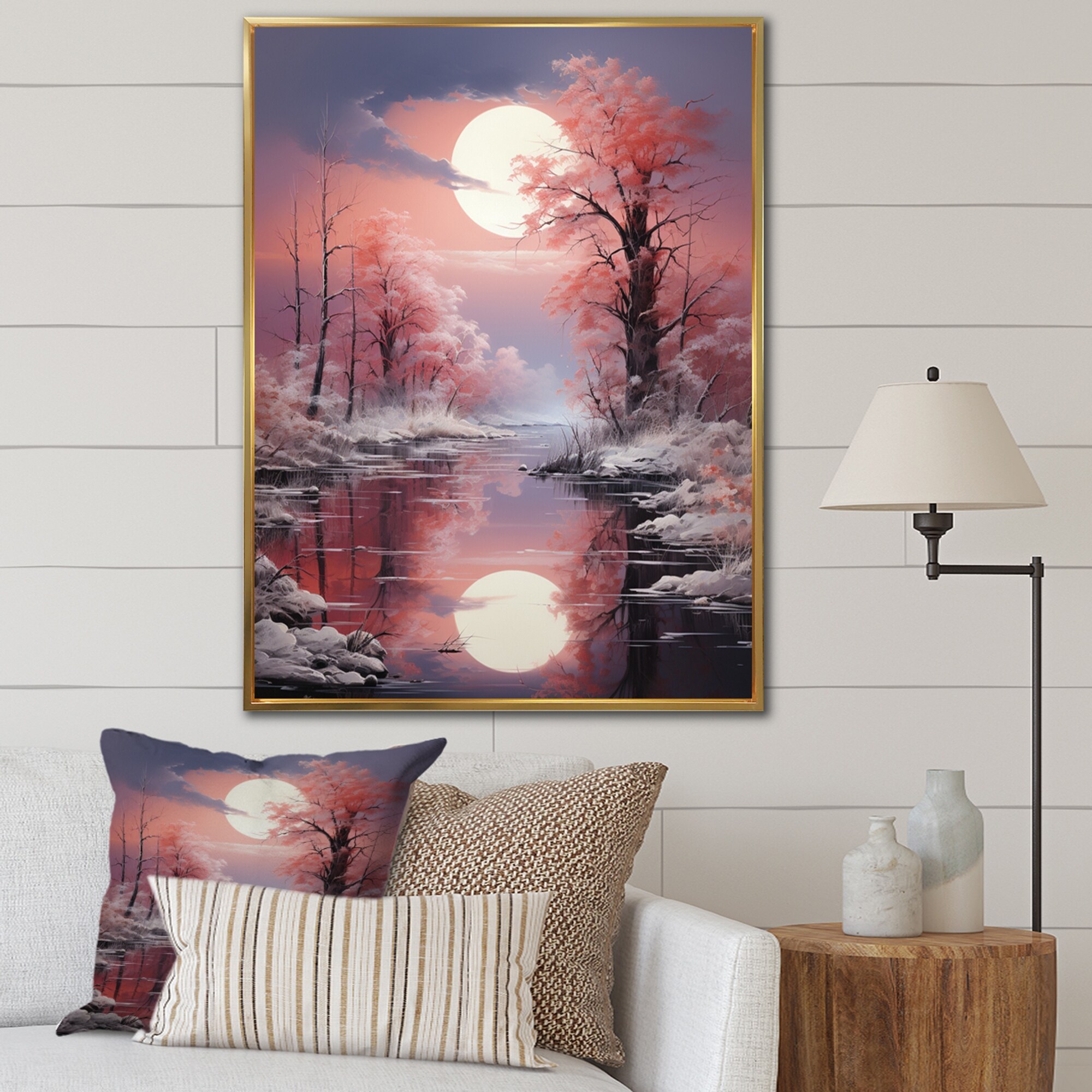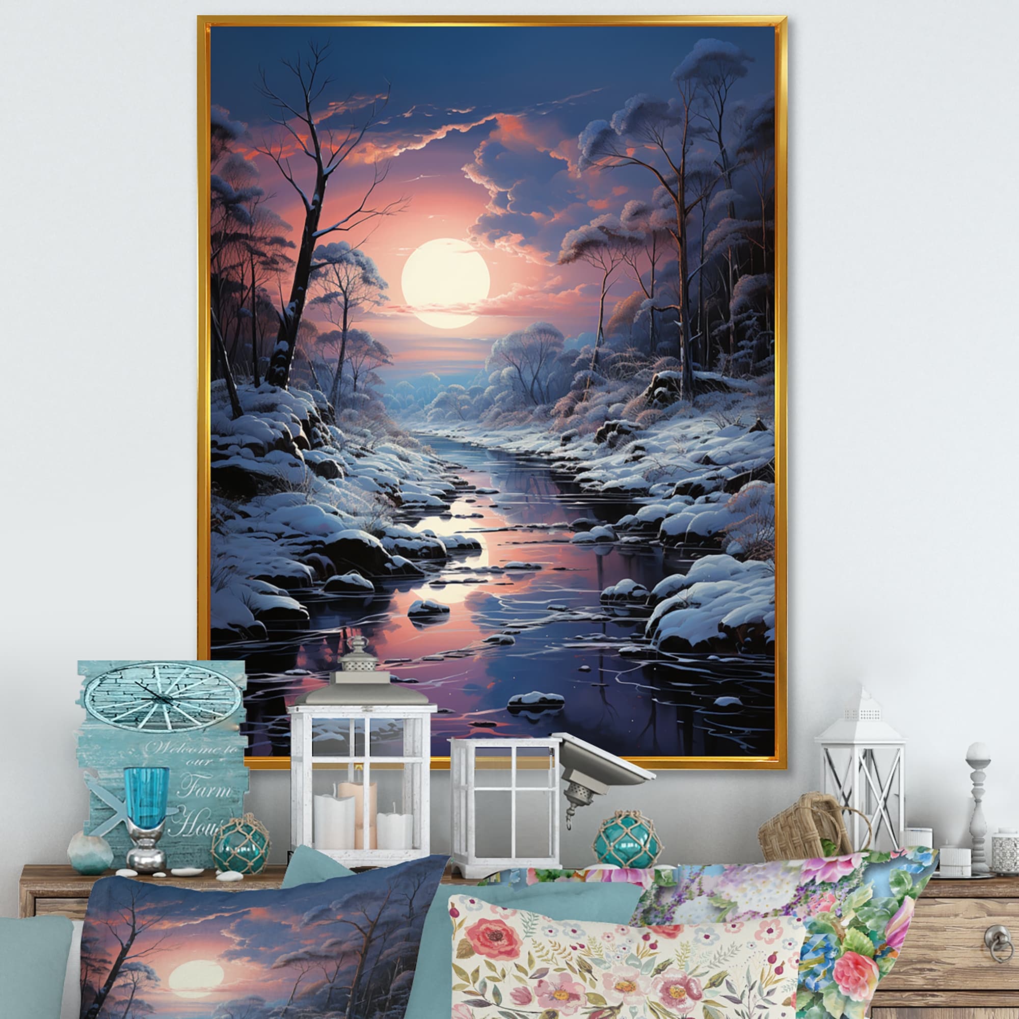 Designart "White Fushia Winter Twilight III" Winter Landscape Framed Canvas Art Print