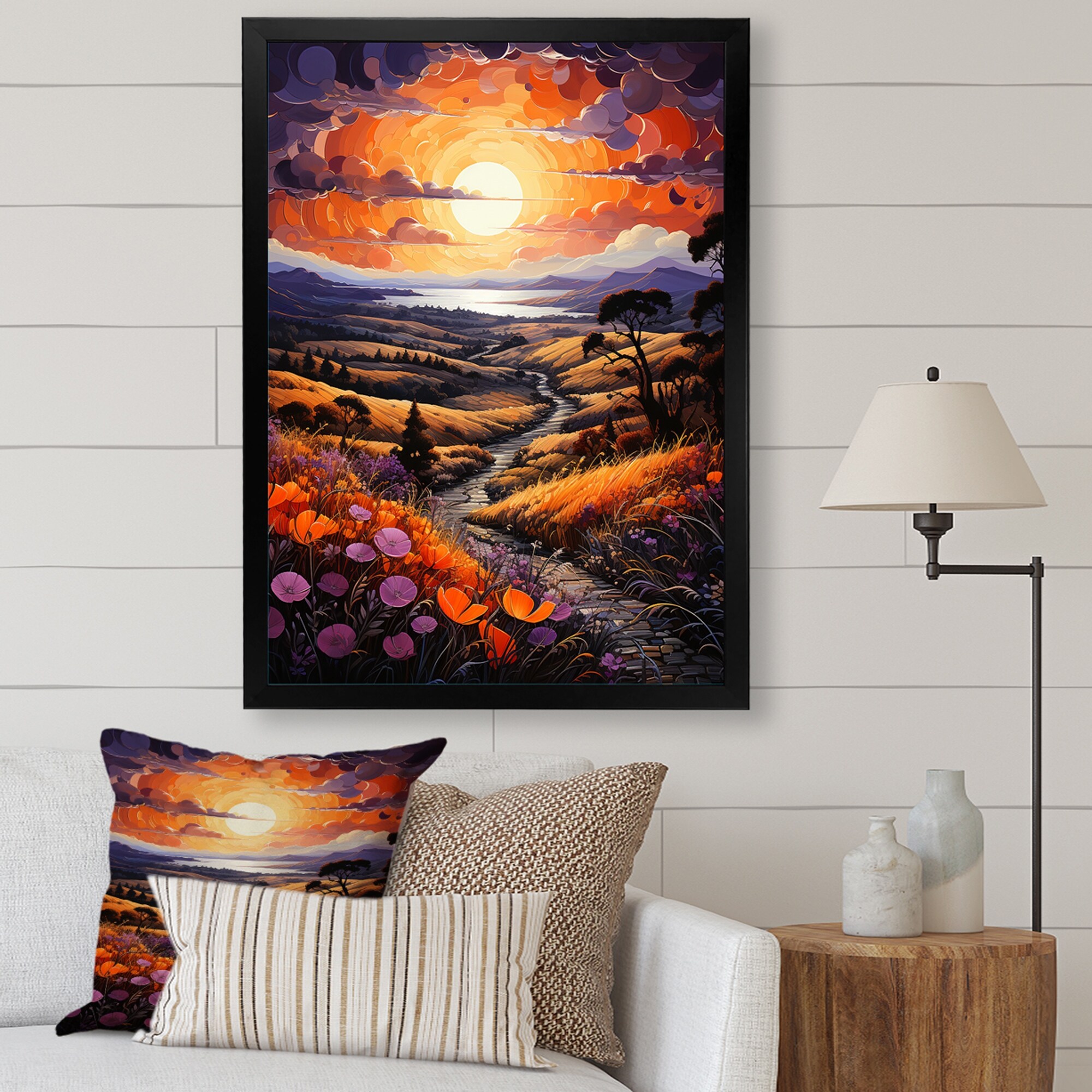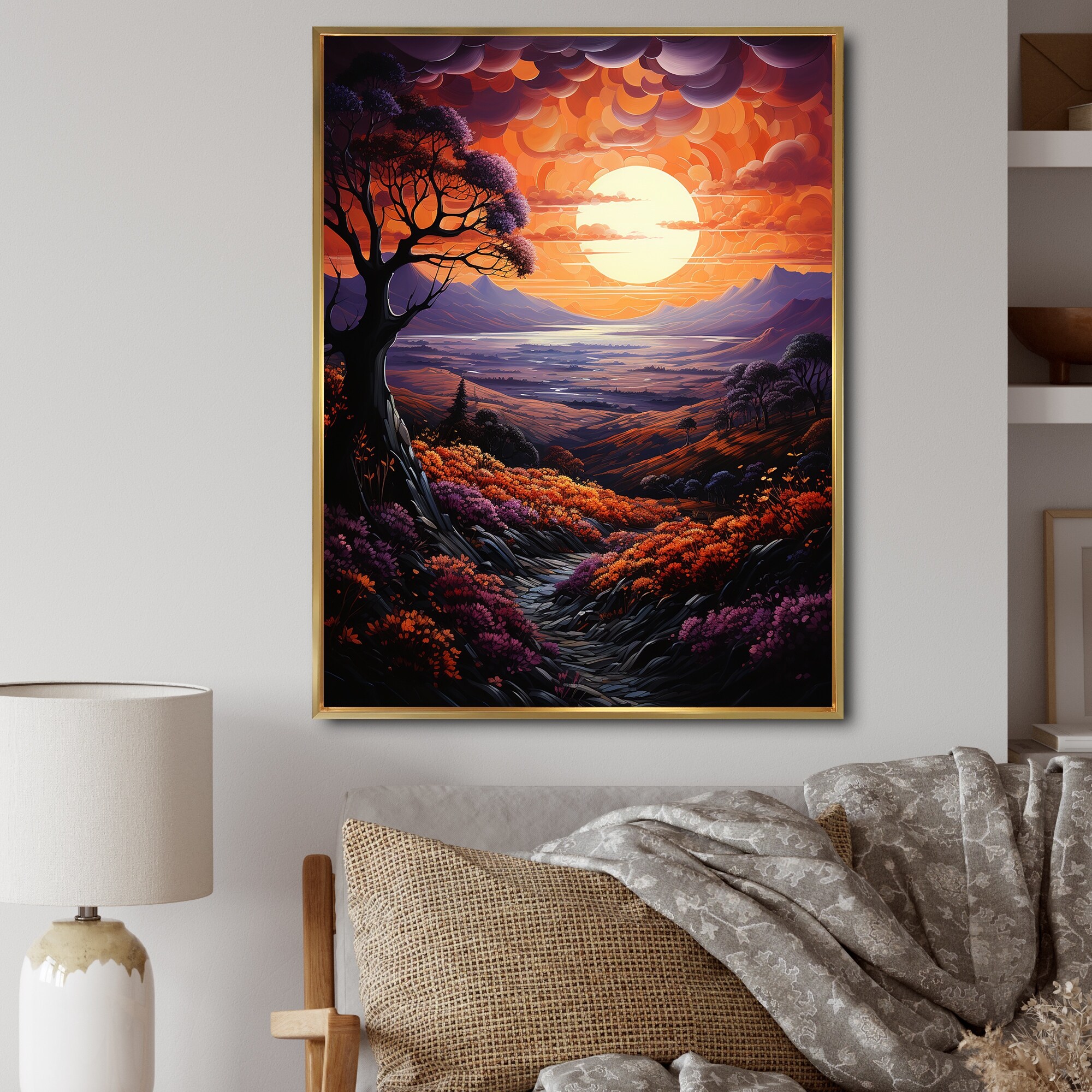 Designart "Twilight Valley Landscape" Abstract Framed Canvas Art Print