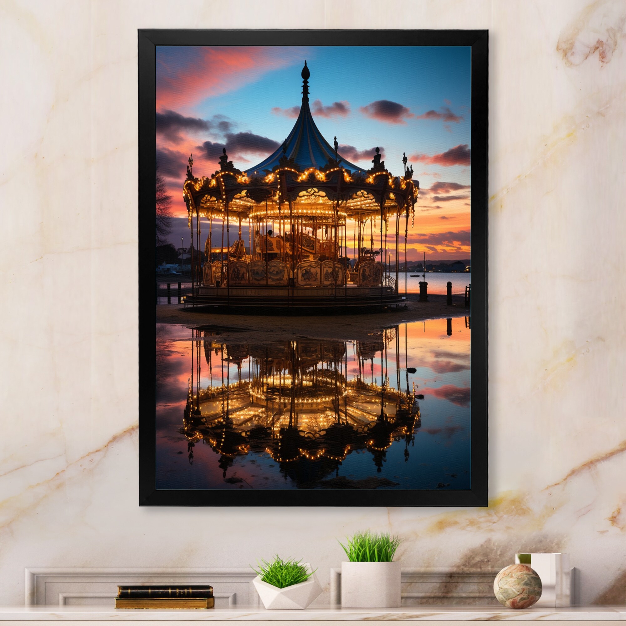 Designart "Carousel Carousel At Twilight" Carousel Framed Canvas Prints