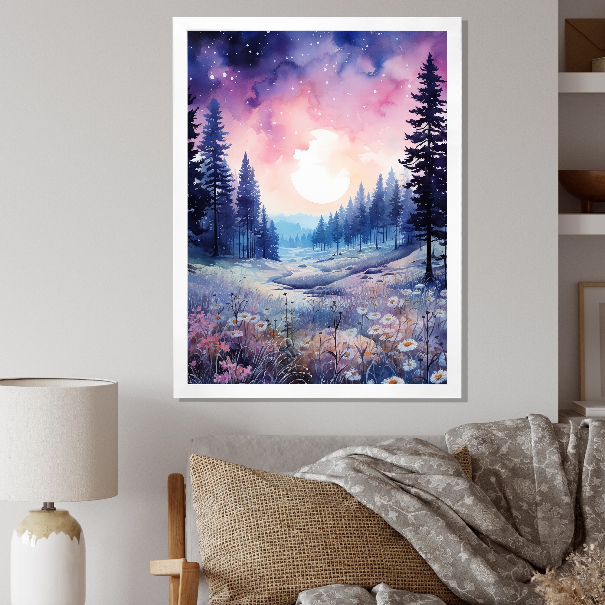 Designart "Pine Tree Winter Twilight III" Tree Pine Framed Wall Art Living Room