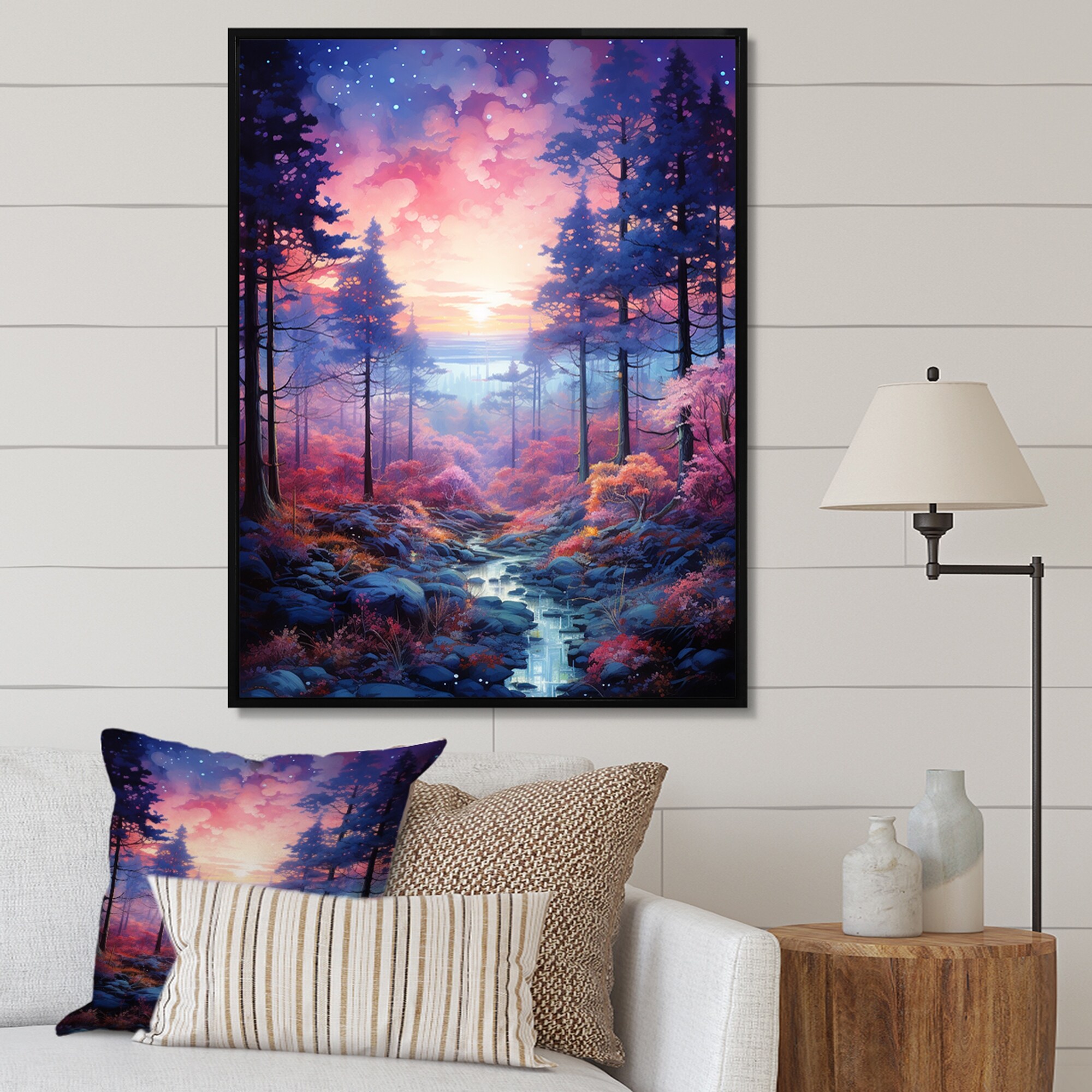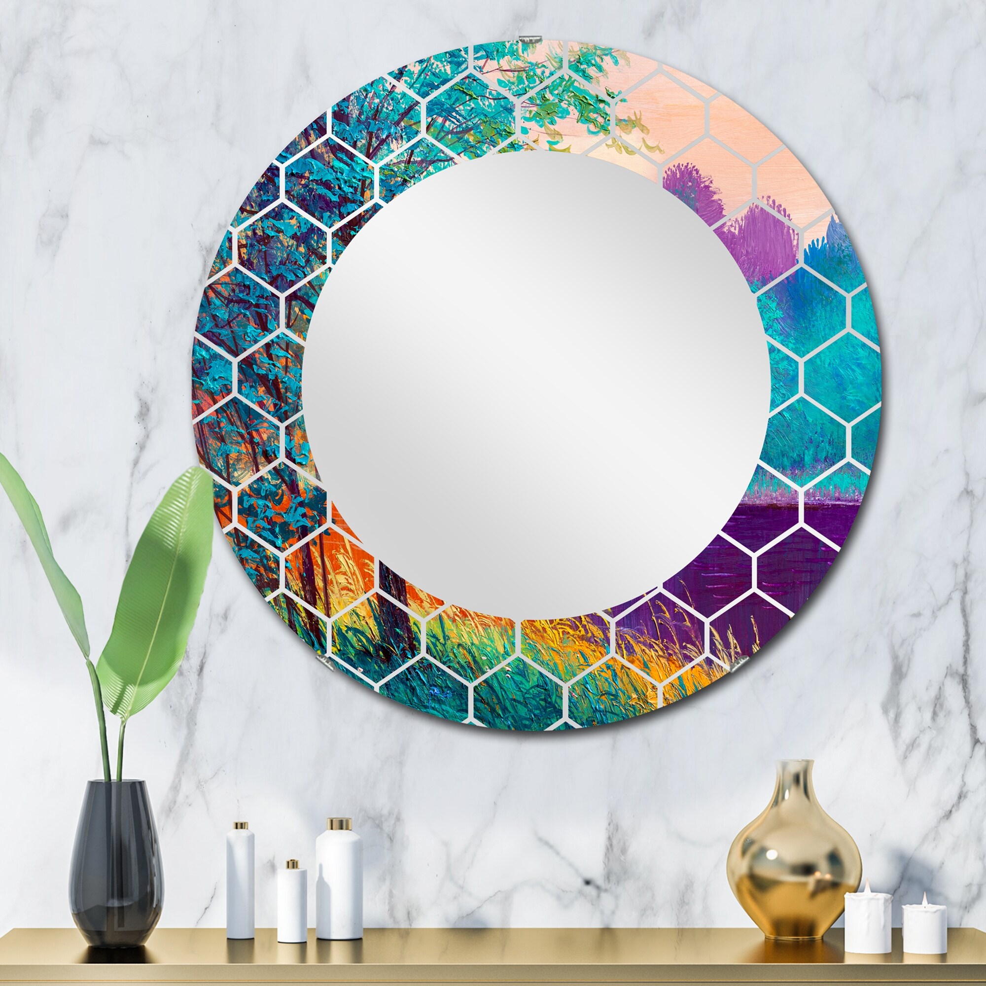 Designart 'Colorful River Between the Trees During Twilight' Printed Traditional Wall Mirror