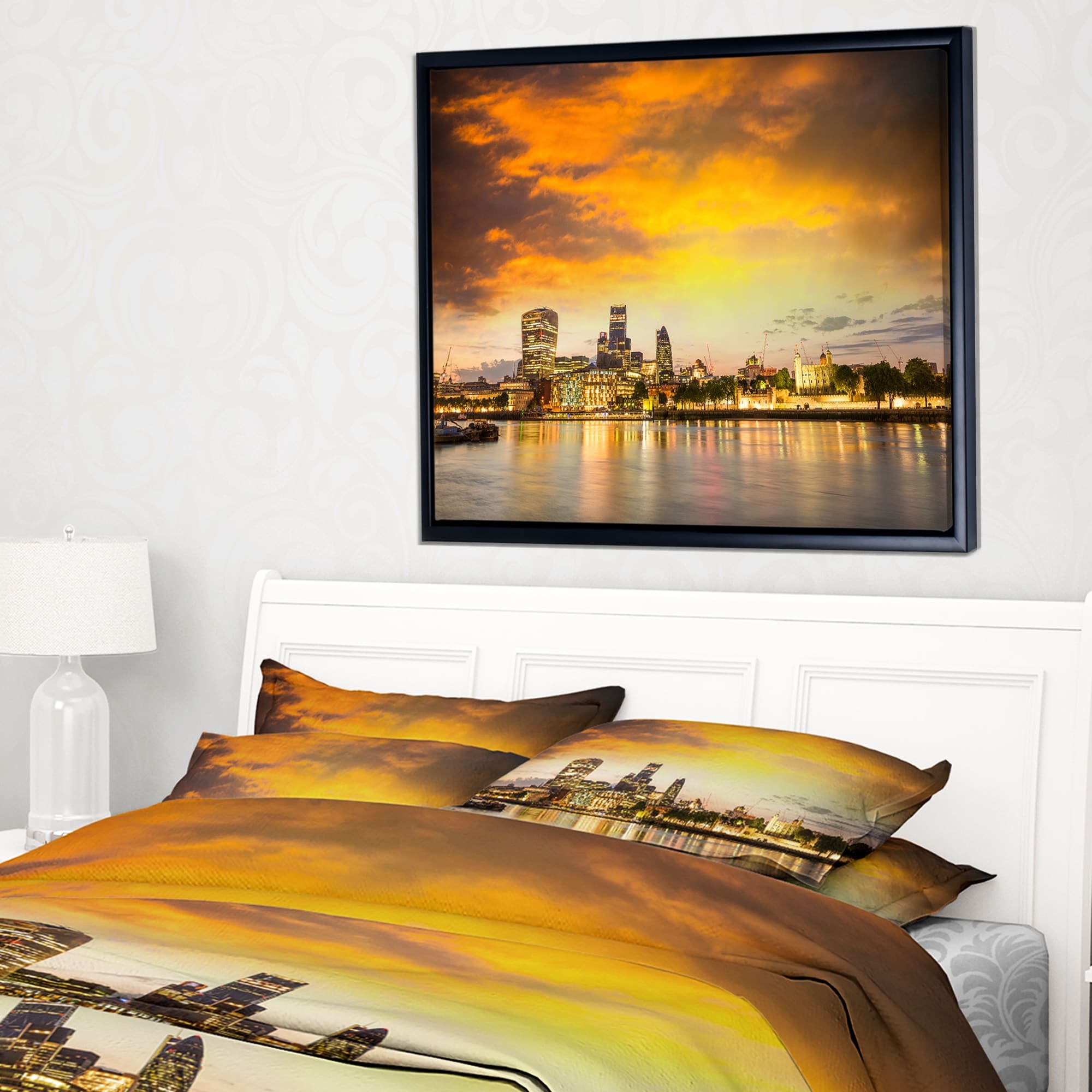 Designart "Financial District of London at Twilight" Cityscape Framed Canvas Print