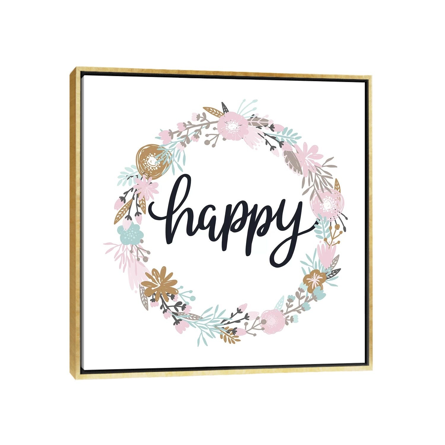 iCanvas "Super Unicorn Designs - Happy Floral" by Pixy Paper Framed