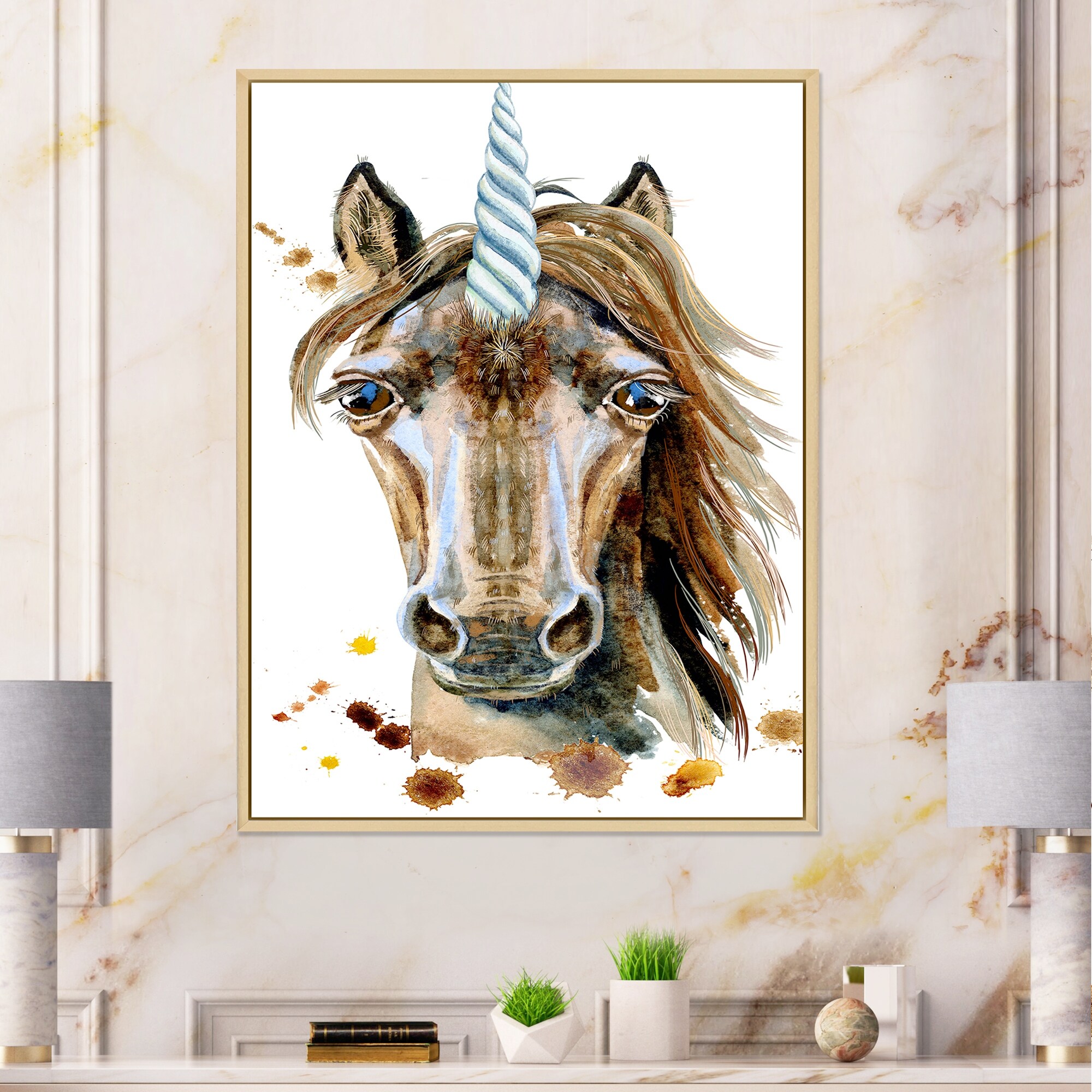 Designart "Portrait Of a Unicorn" Traditional Framed Canvas Wall Art Print