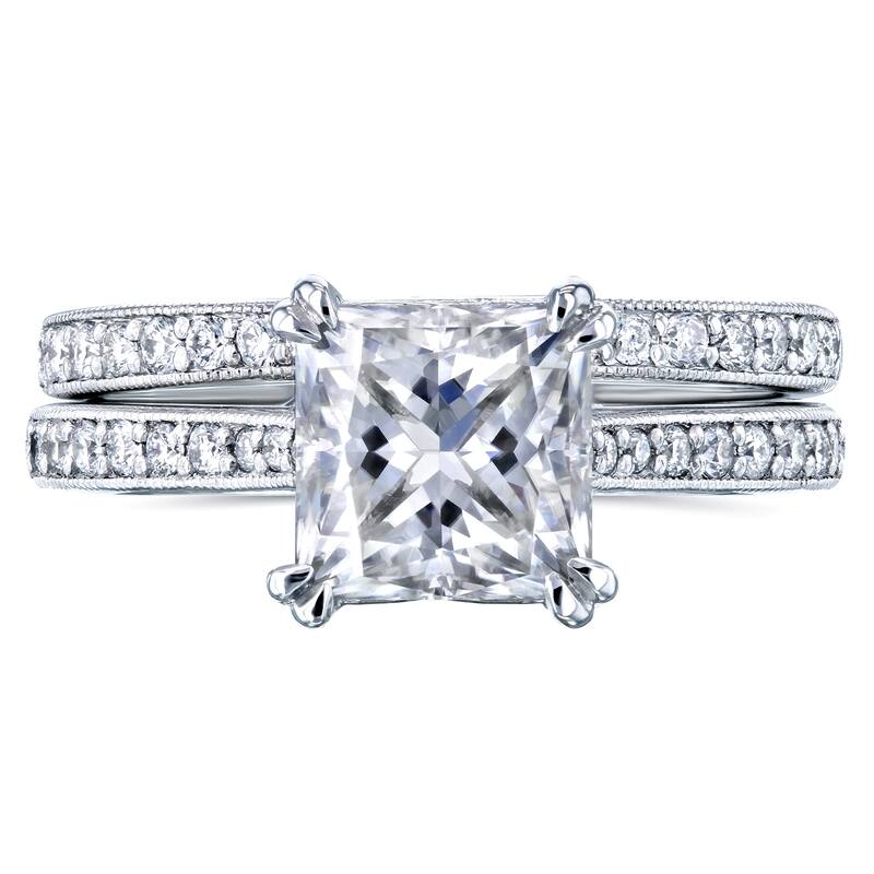 Annello by Kobelli 14k Gold 2 1/3ct TGW Princess Moissanite and Diamond Square Shank Trellis Bridal Set (GH/VS, GH/I)