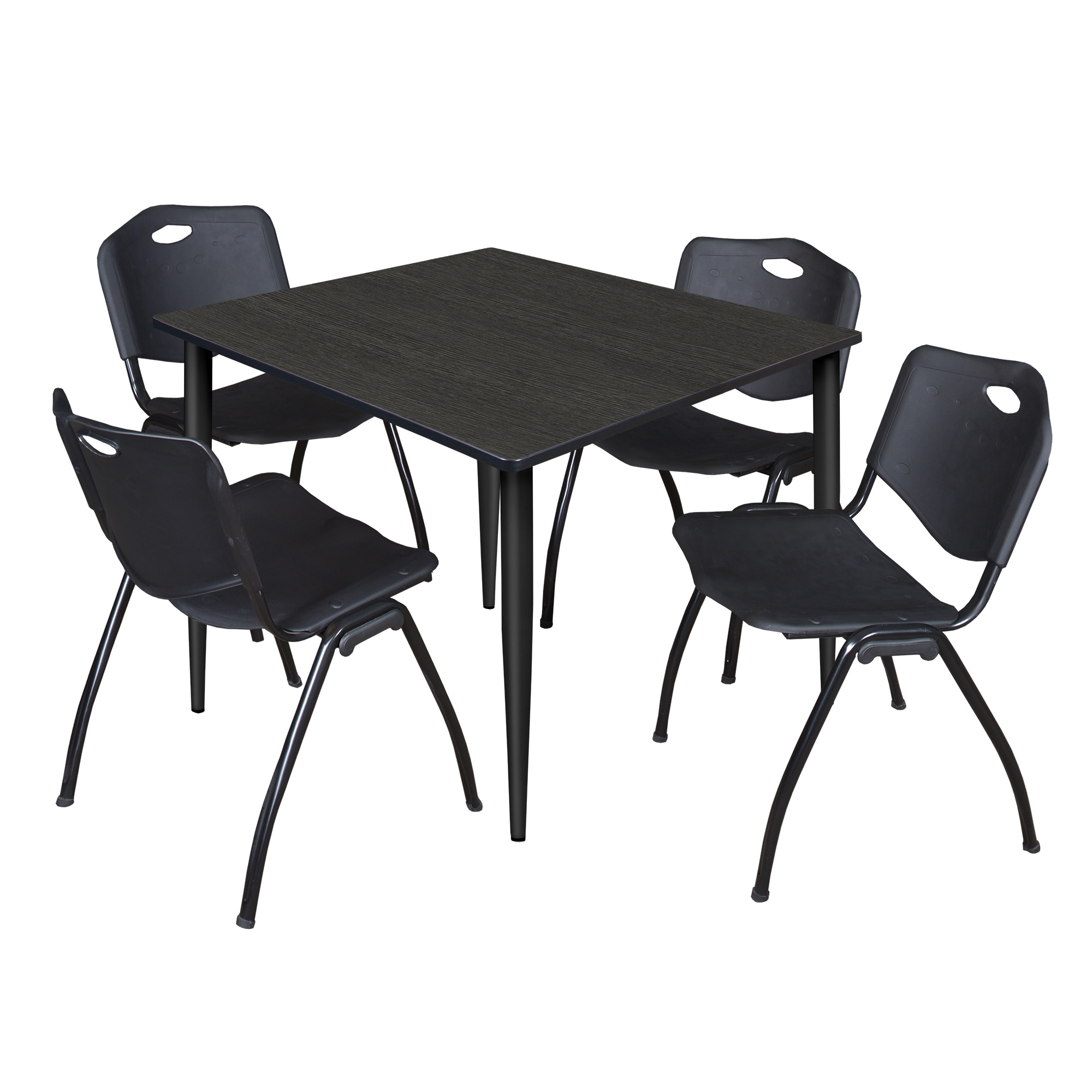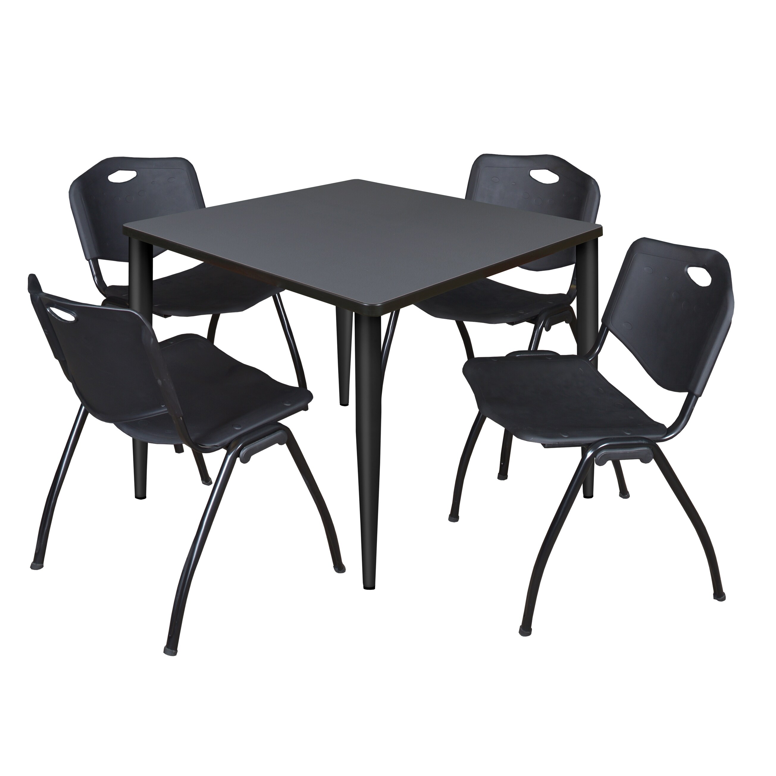 Kahlo 42" Square Breakroom Table- Grey/ Black & 4 'M' Stack Chairs- Black