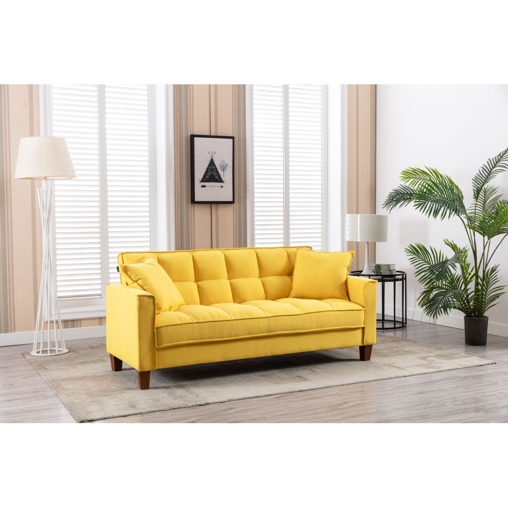 Modern Velvet Sofa Tufted Square Arm Couch ,2 Pillows