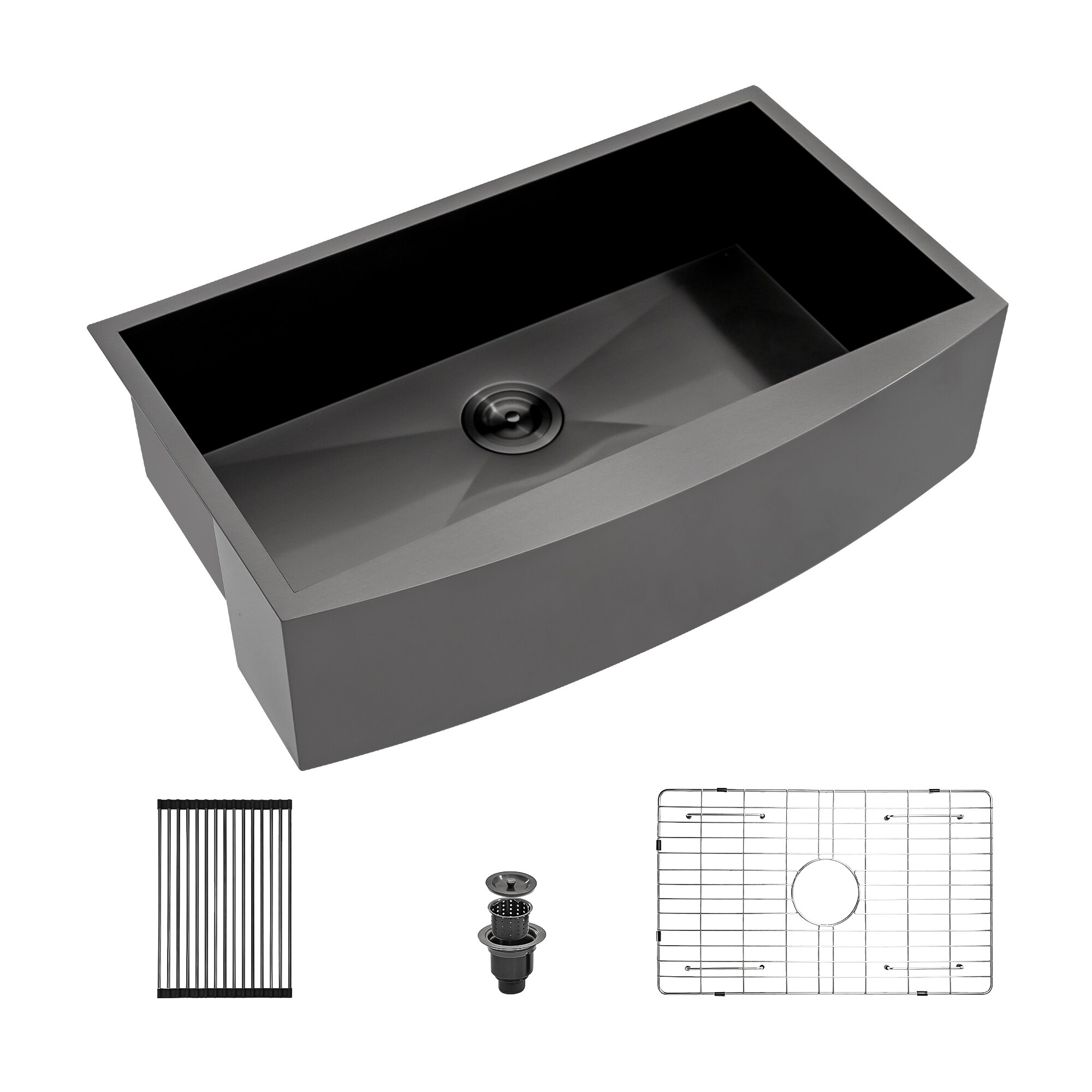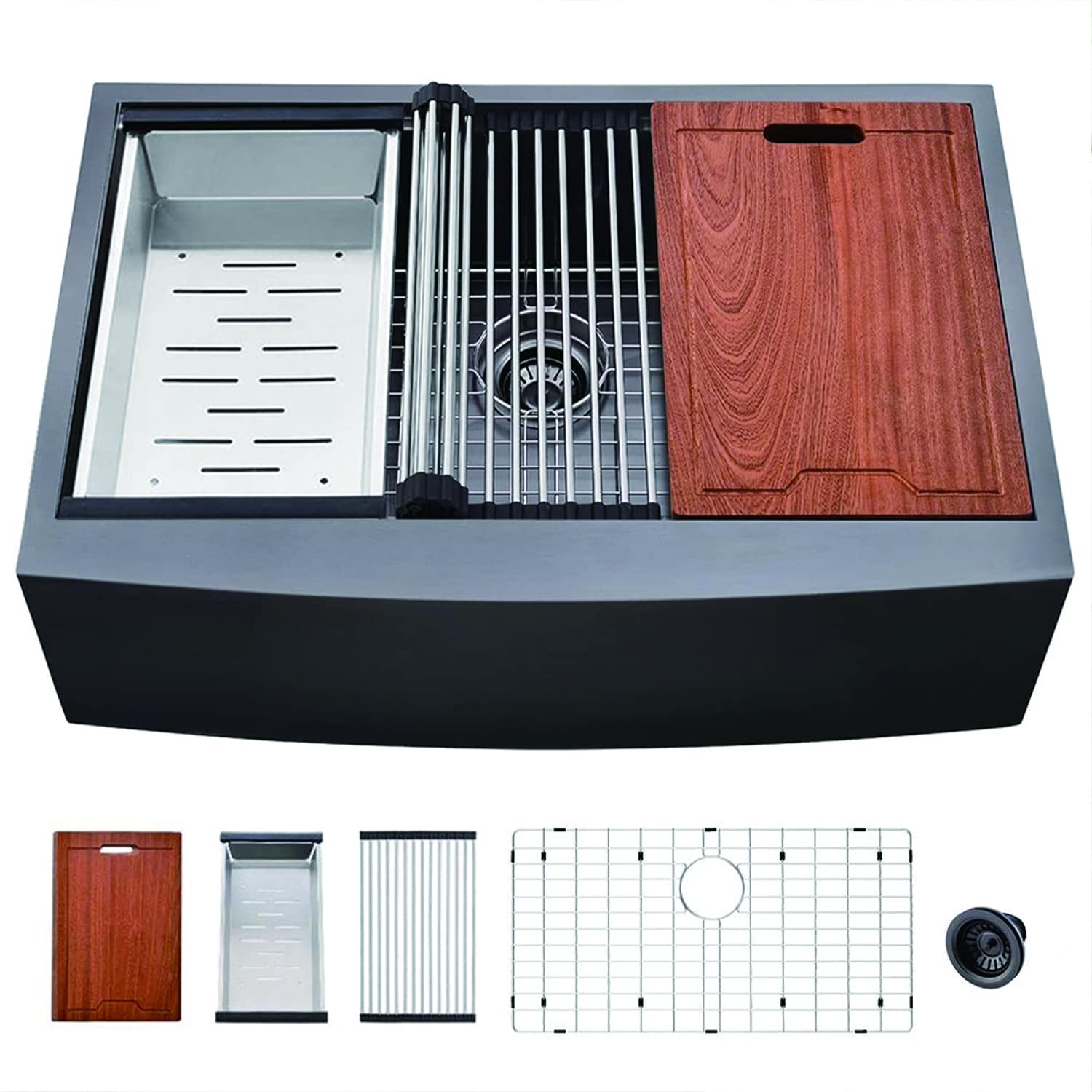 Topcraft 33 inch L Single Bowl Farmhouse Apron Workstation Kitchen Sink
