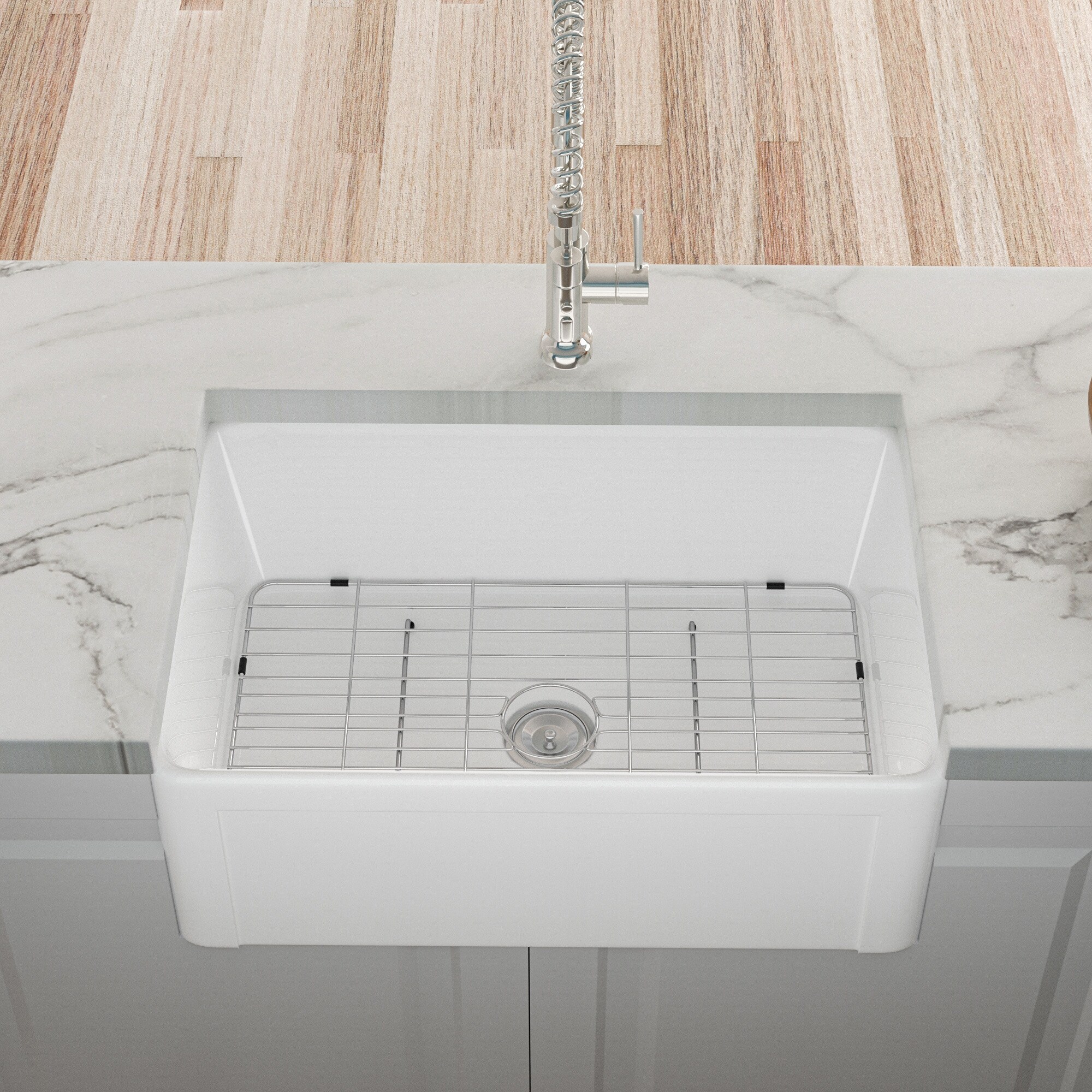White Ceramic 30 in. Single Bowl Farmhouse Apron Kitchen Sink with Strainer