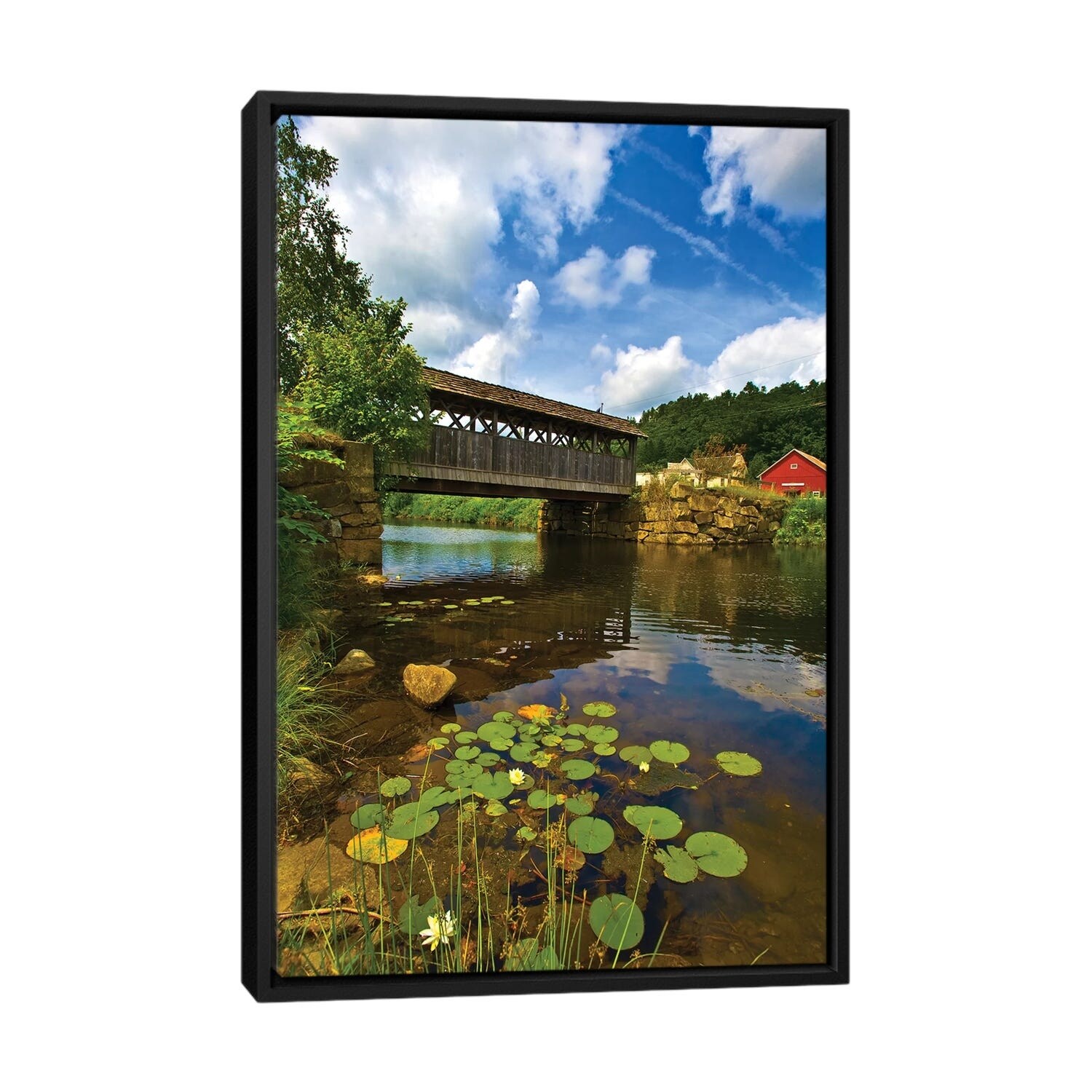 iCanvas "Covered Pedestrian Bridge Over Joes Brook, West Danville, Vermont, USA" by Panoramic Images Framed Canvas Print