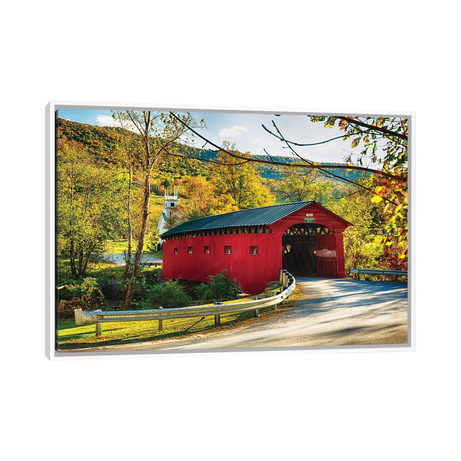iCanvas "Red Covered Bridge and a Curch, Vermont" by George Oze Framed Canvas Print