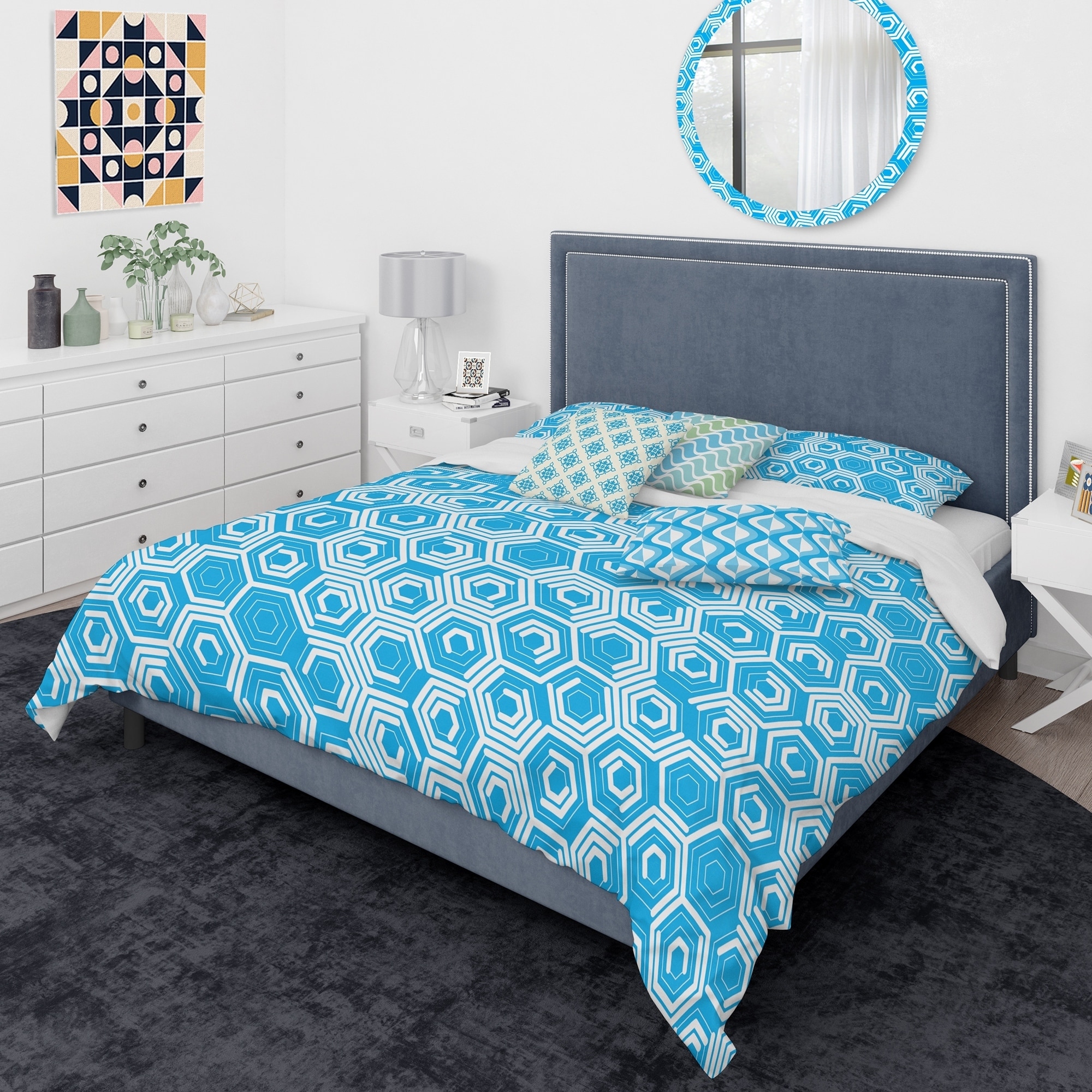 Designart 'Retro Hexagon Pattern VII' Mid-Century Modern Duvet Cover Comforter Set