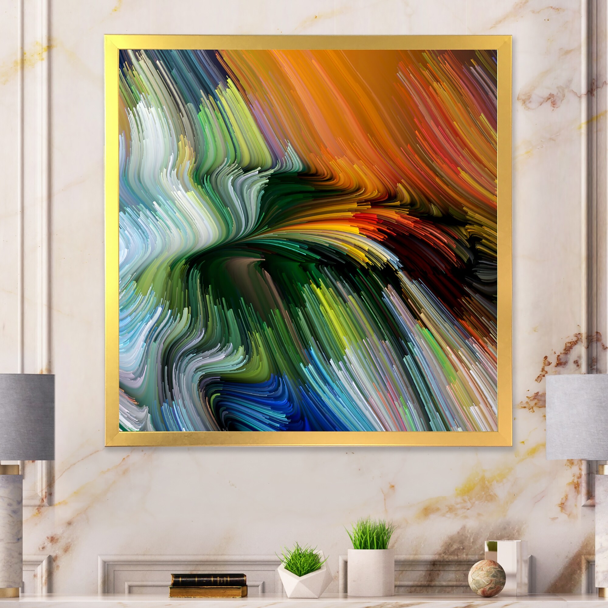 Designart "Elegance Of Liquid Color VII" Modern Framed Art Print