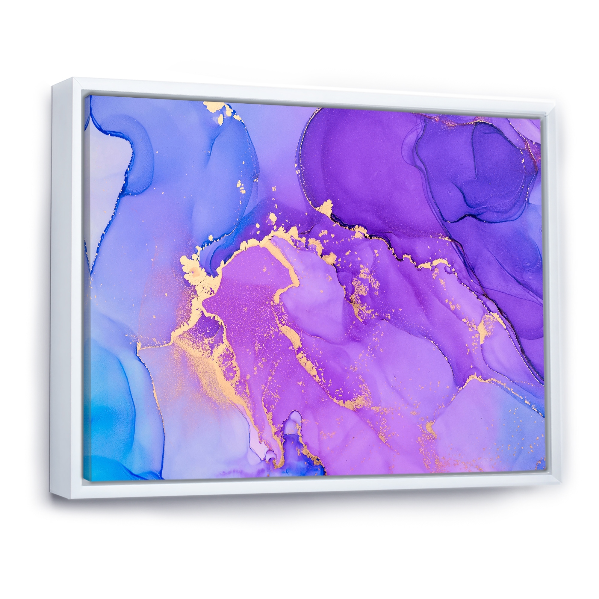 Designart "Purple And Blue Luxury Abstract Fluid Art VII" Modern Framed Canvas Wall Art Print
