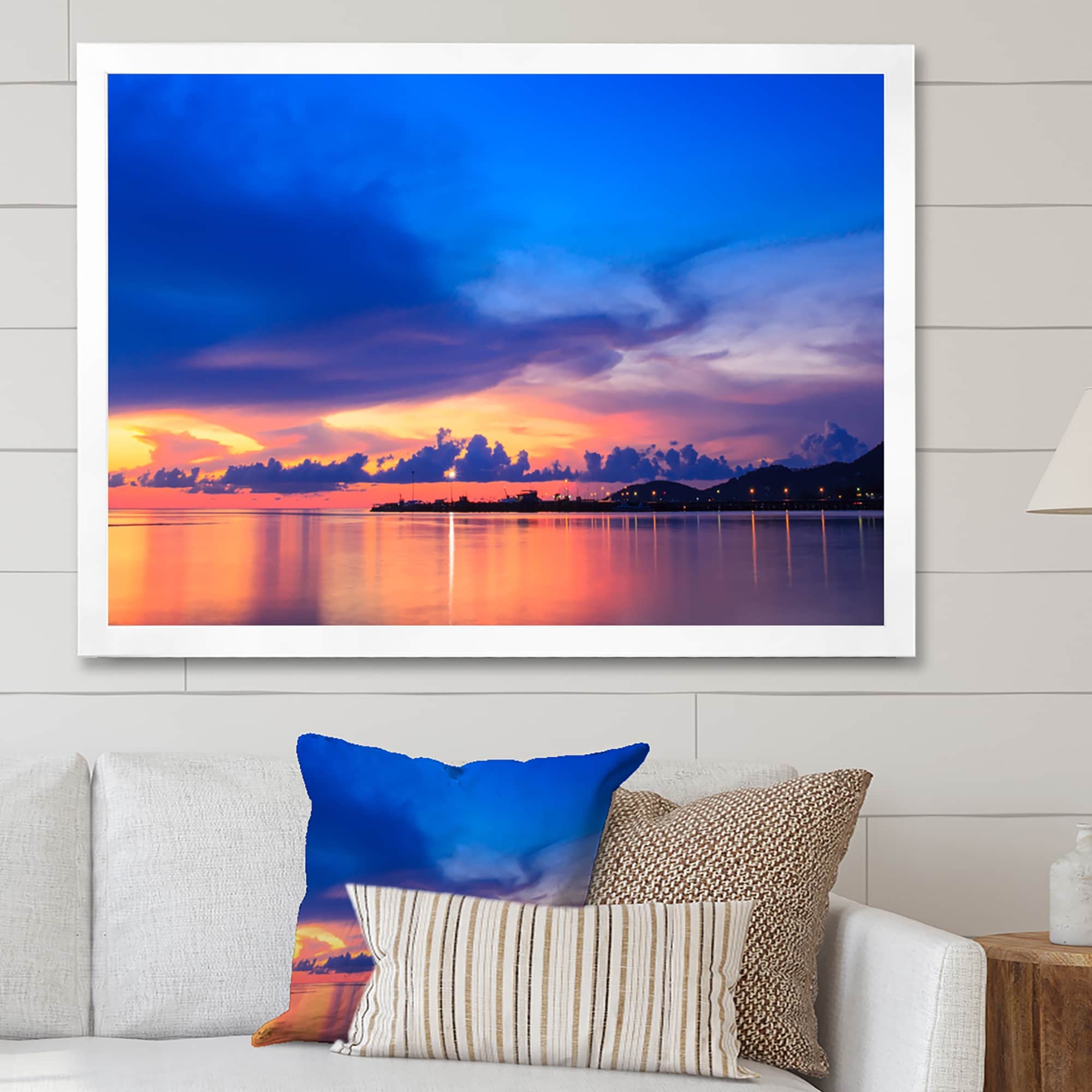 Designart "Dramatic Panoramic Tropical Sunset VII" Nautical & Coastal Framed Wall Art