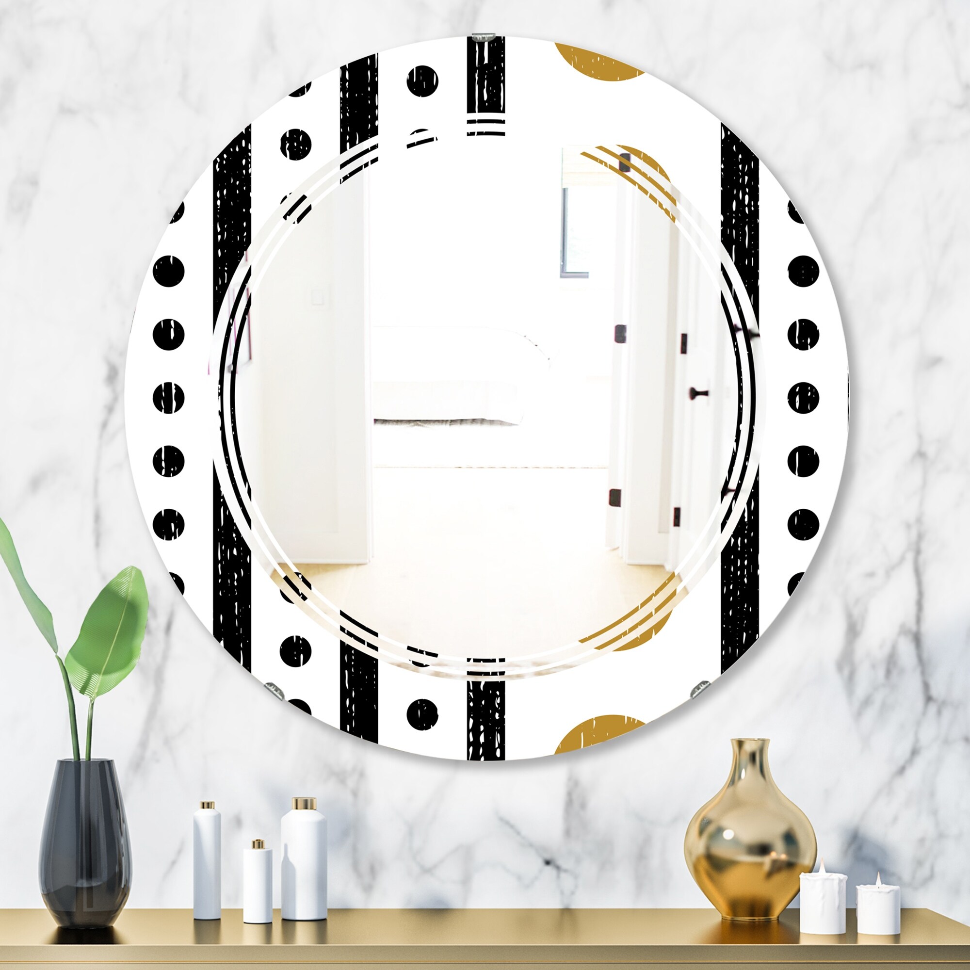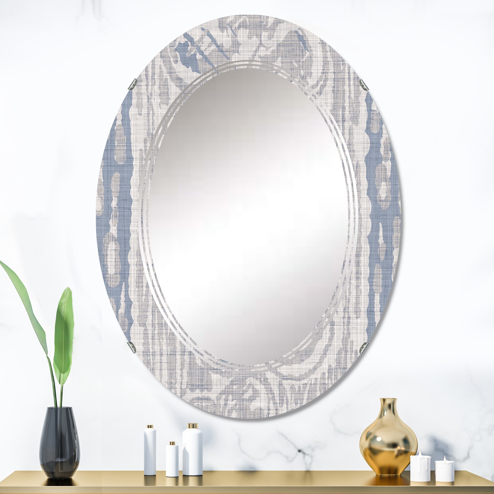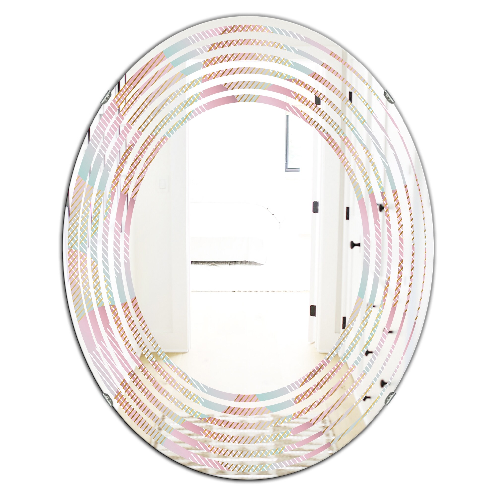 Designart 'Retro Geometrical Abstract Minimal Pattern VII' Printed Modern Round or Oval Wall Mirror - Triple C