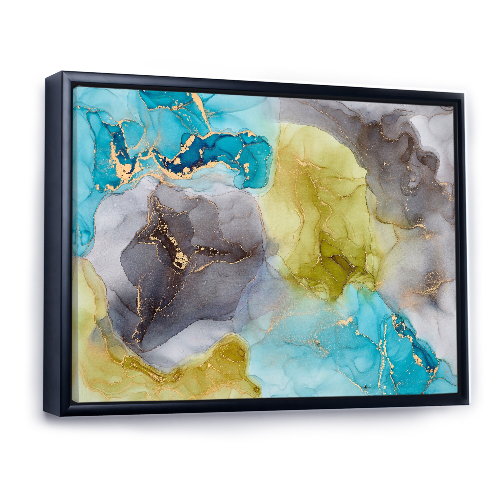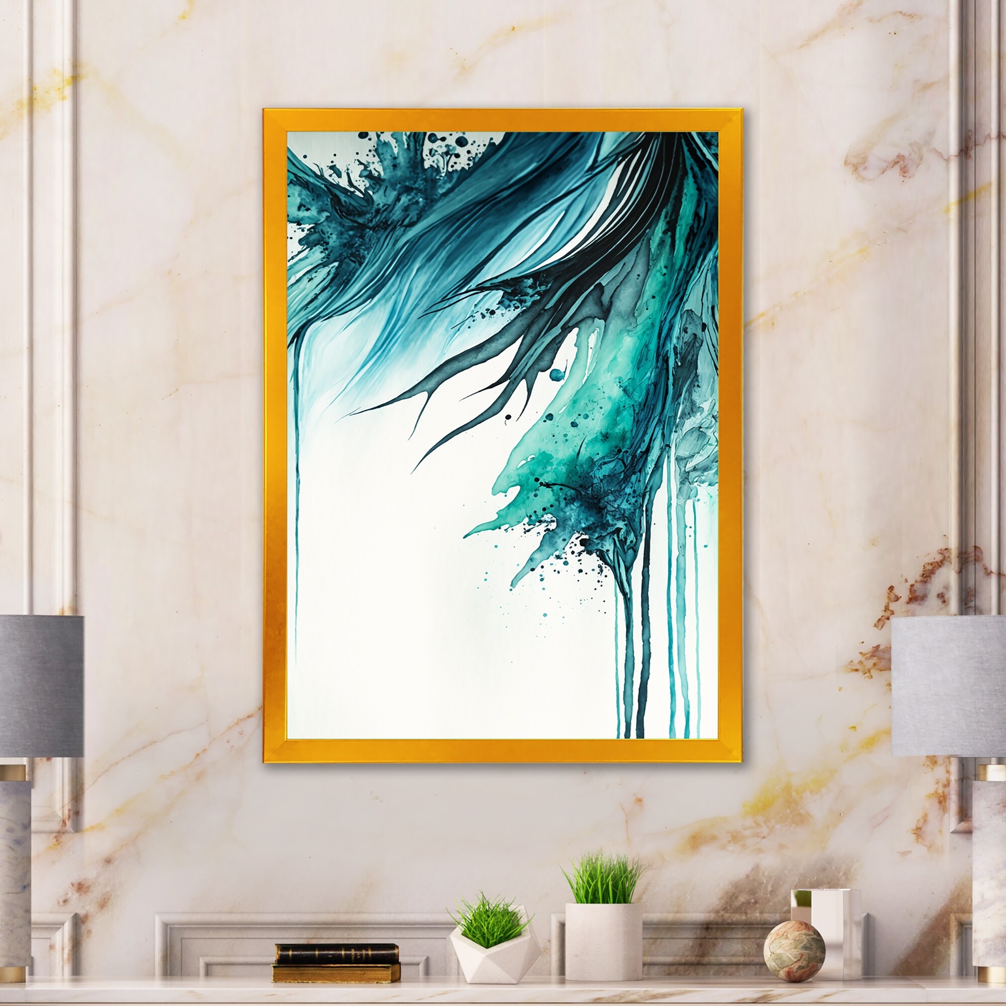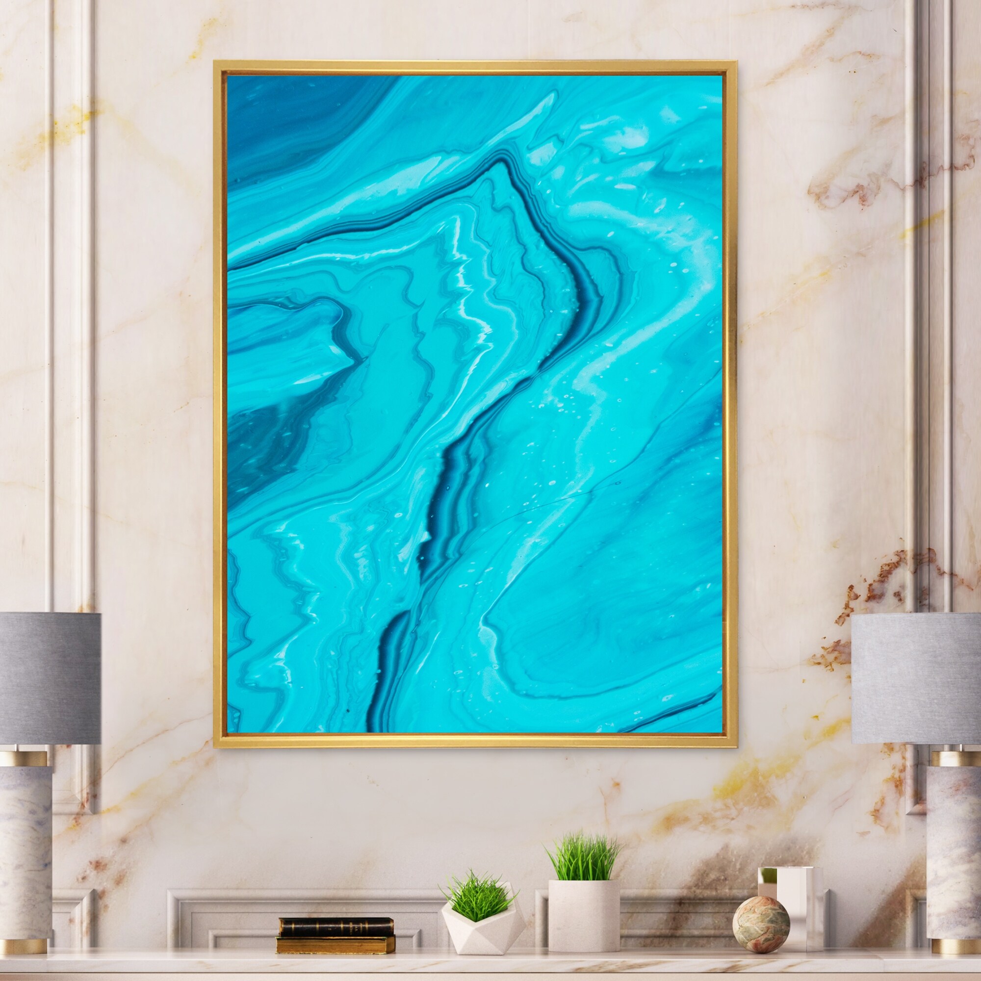 Designart "Luxury Turquoise Marble River VII" Abstract Framed Canvas Art Print