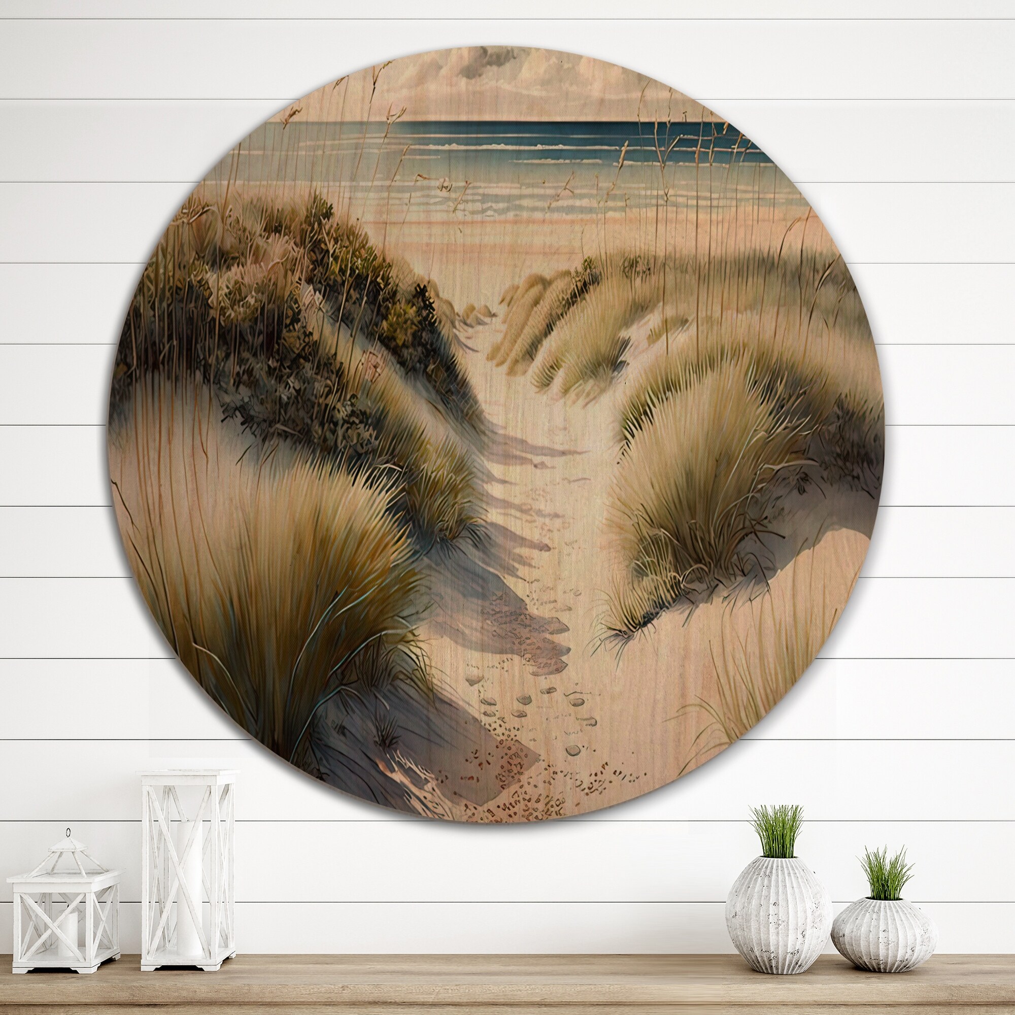 Designart "Walkway To the Beach VII" Traditional Wood Wall Art - Natural Pine Wood