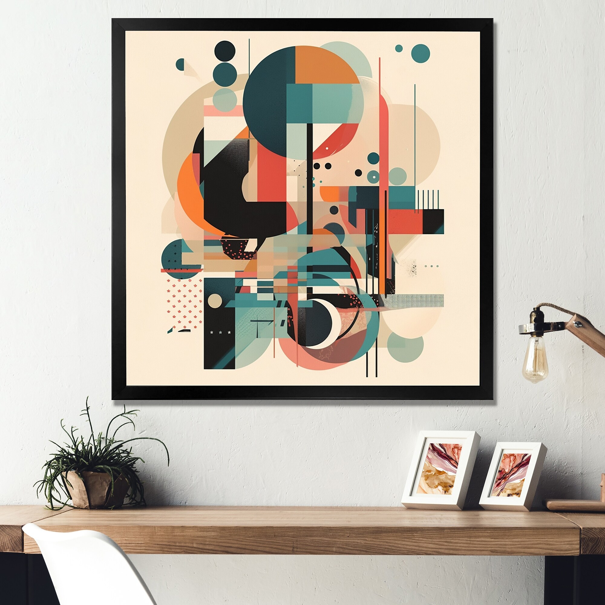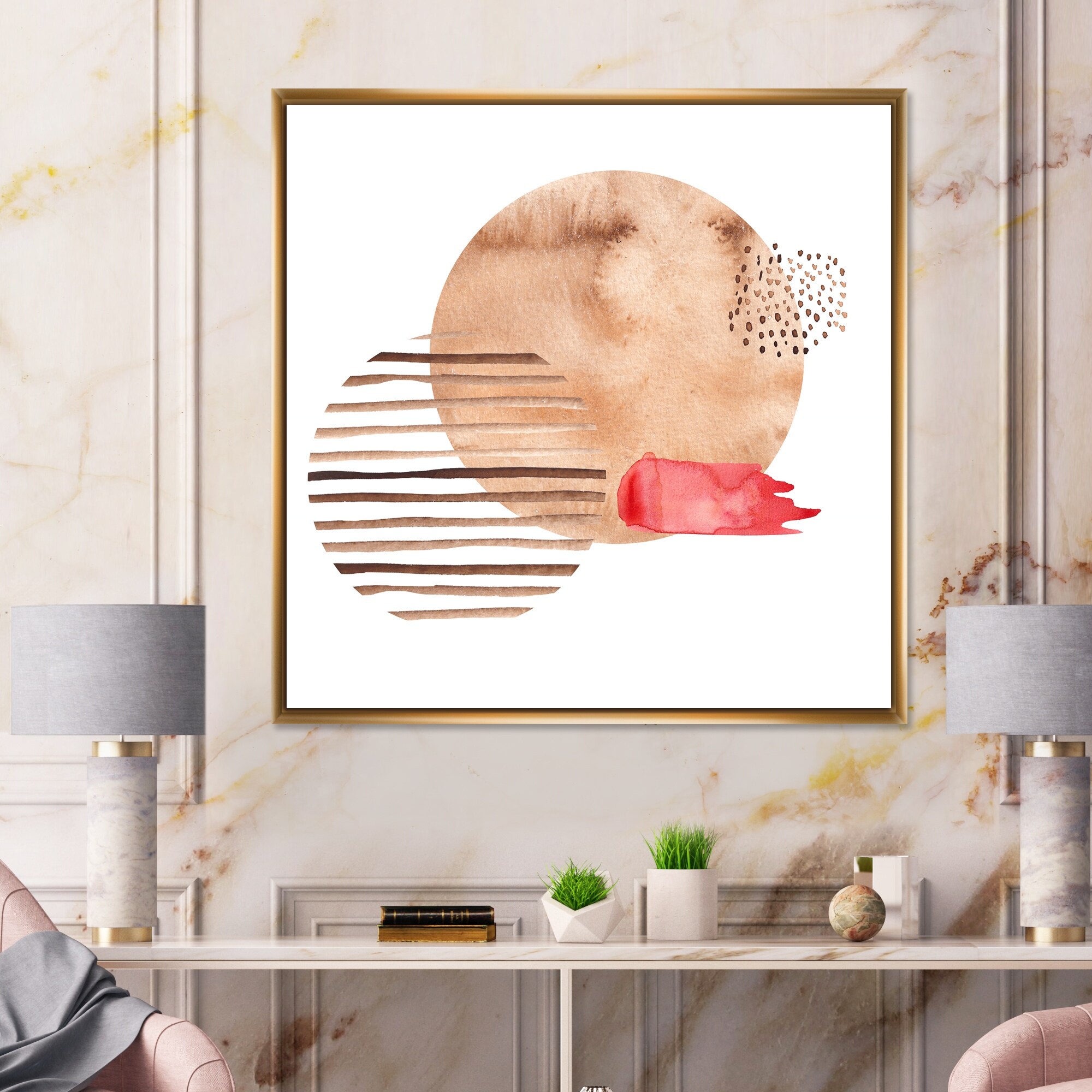 Designart "Abstract Geometric Shapes in Earth Tones VII" Modern Framed Canvas Wall Art Print