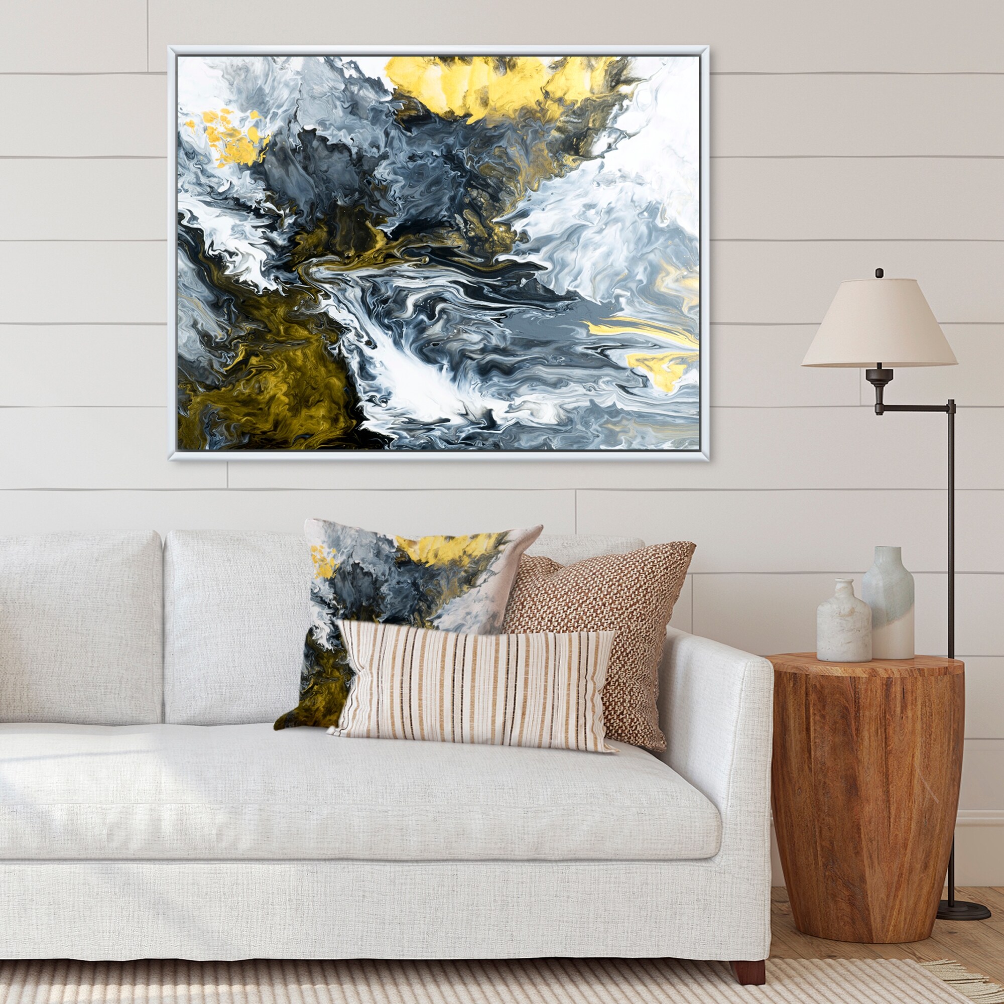 Designart "Yellow Marble River in Liquid Art Universe VII" Modern Framed Canvas Wall Art Print