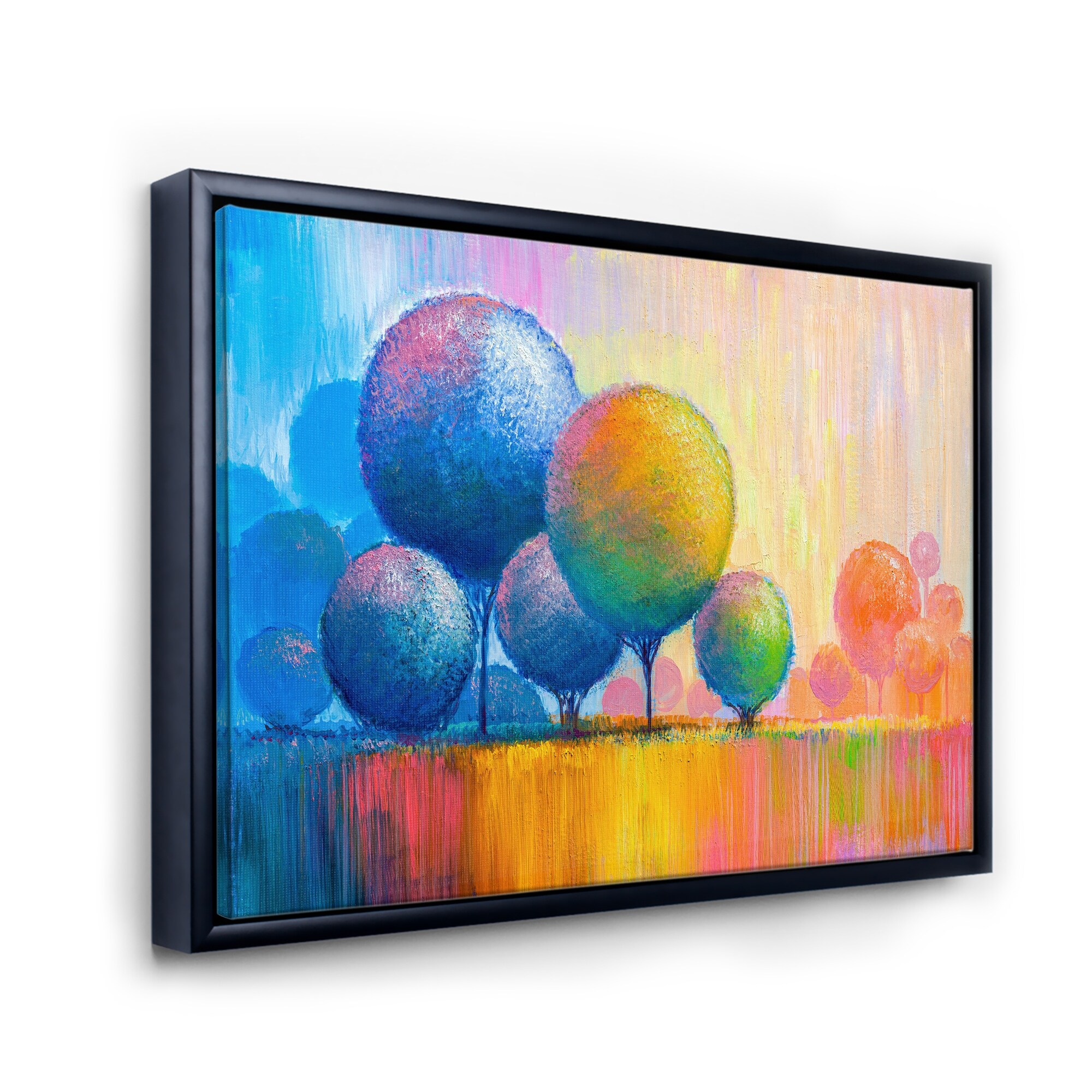 Designart "Colourful Ornamental Trees VII" Modern Framed Canvas Wall Art Print