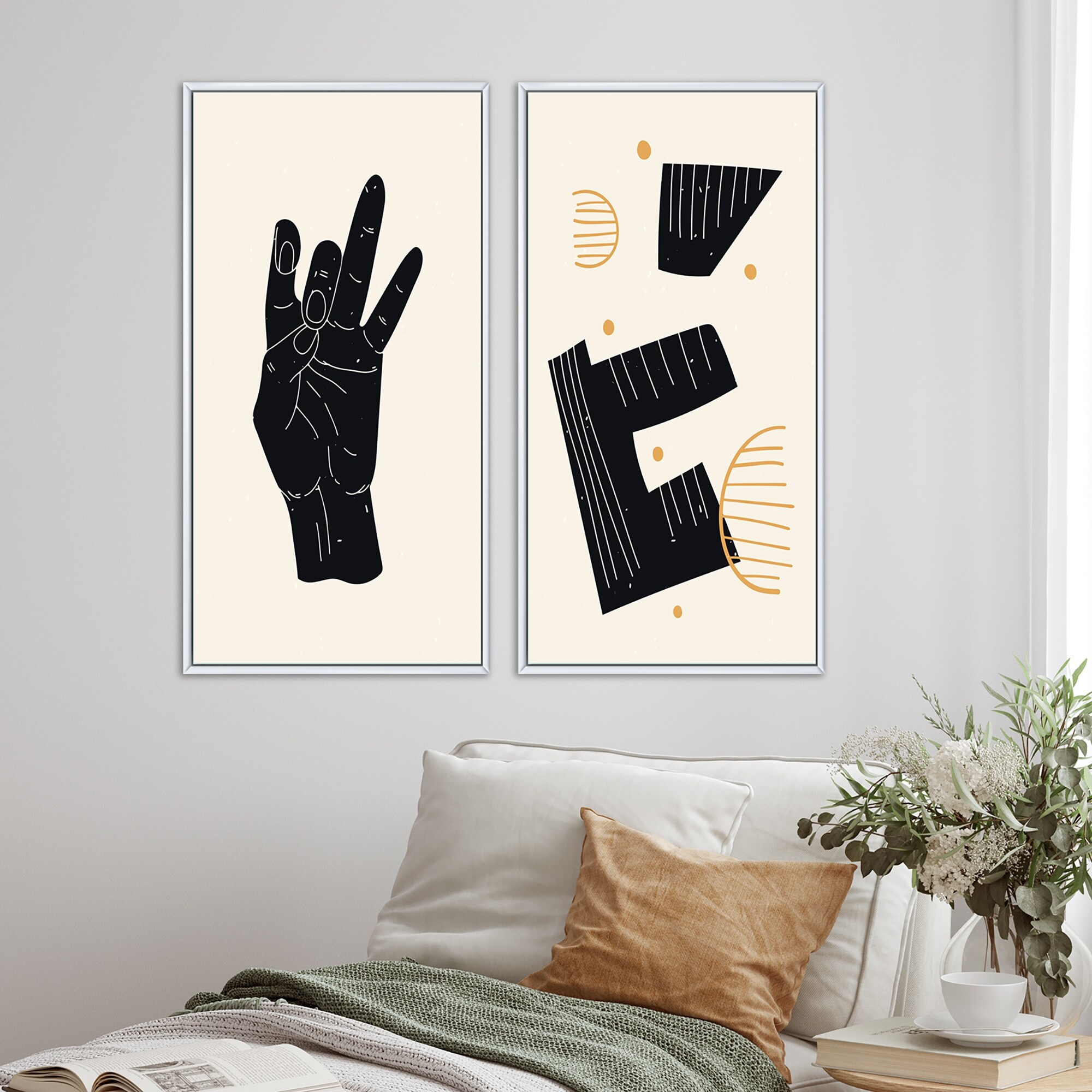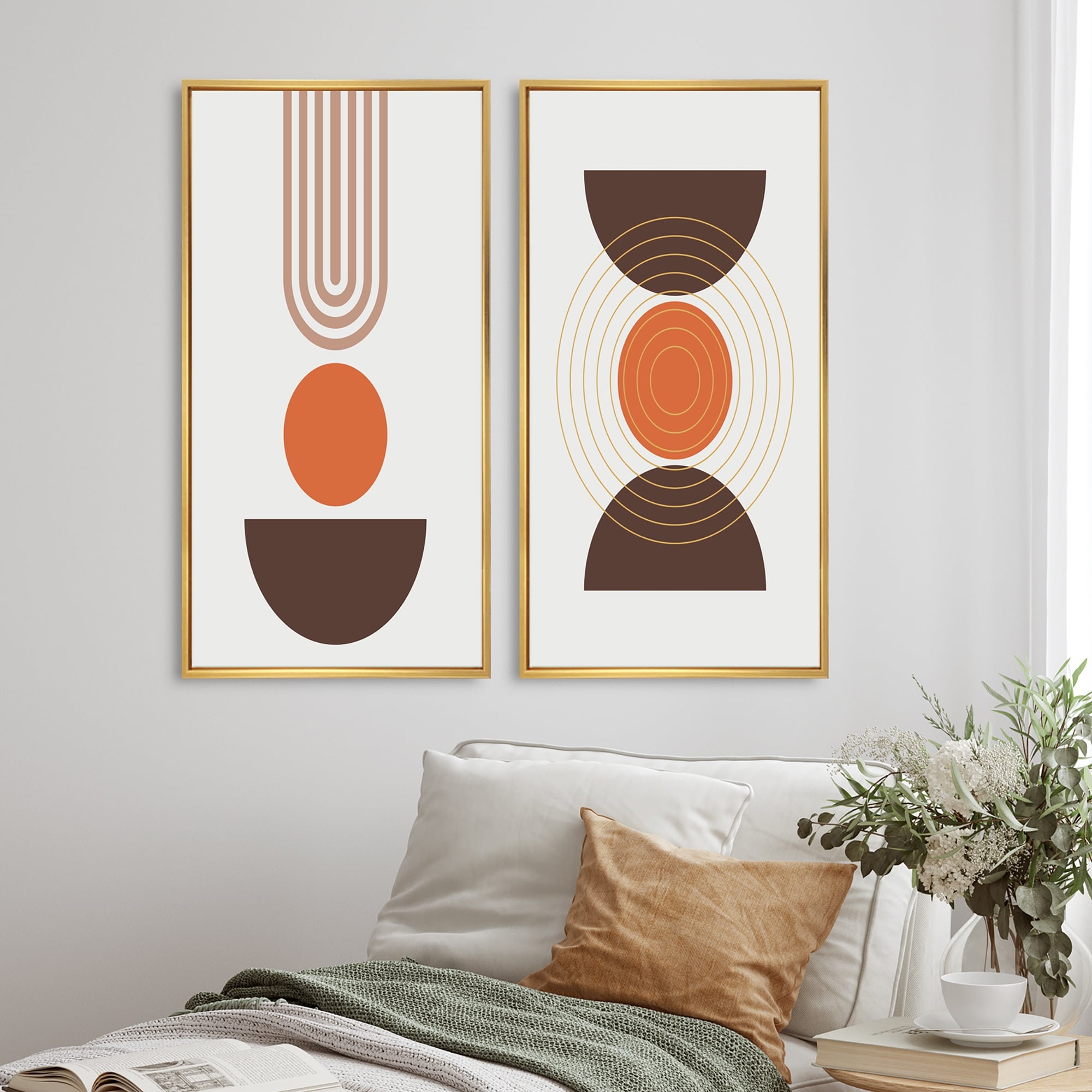 Designart "Minimalistic Creative Designs in Retro Colors VII" Abstract Framed Art Set of 2 Pieces