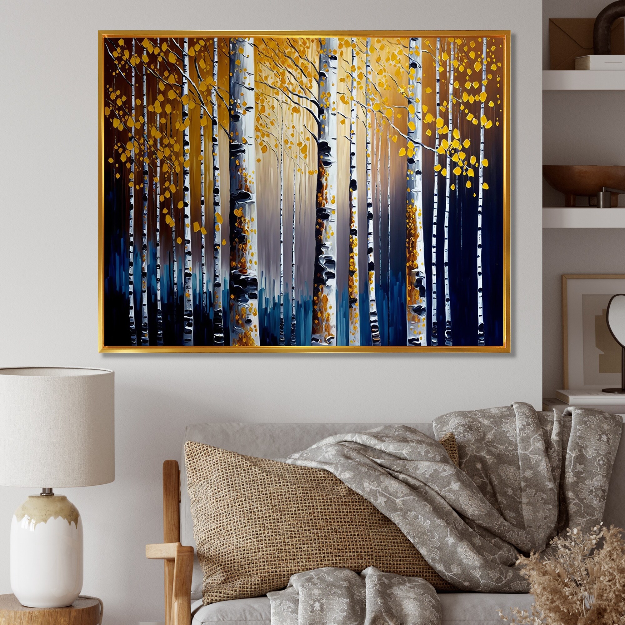 Designart "Into A Golden Birch Forest VII" Landscape Framed Canvas Art Print
