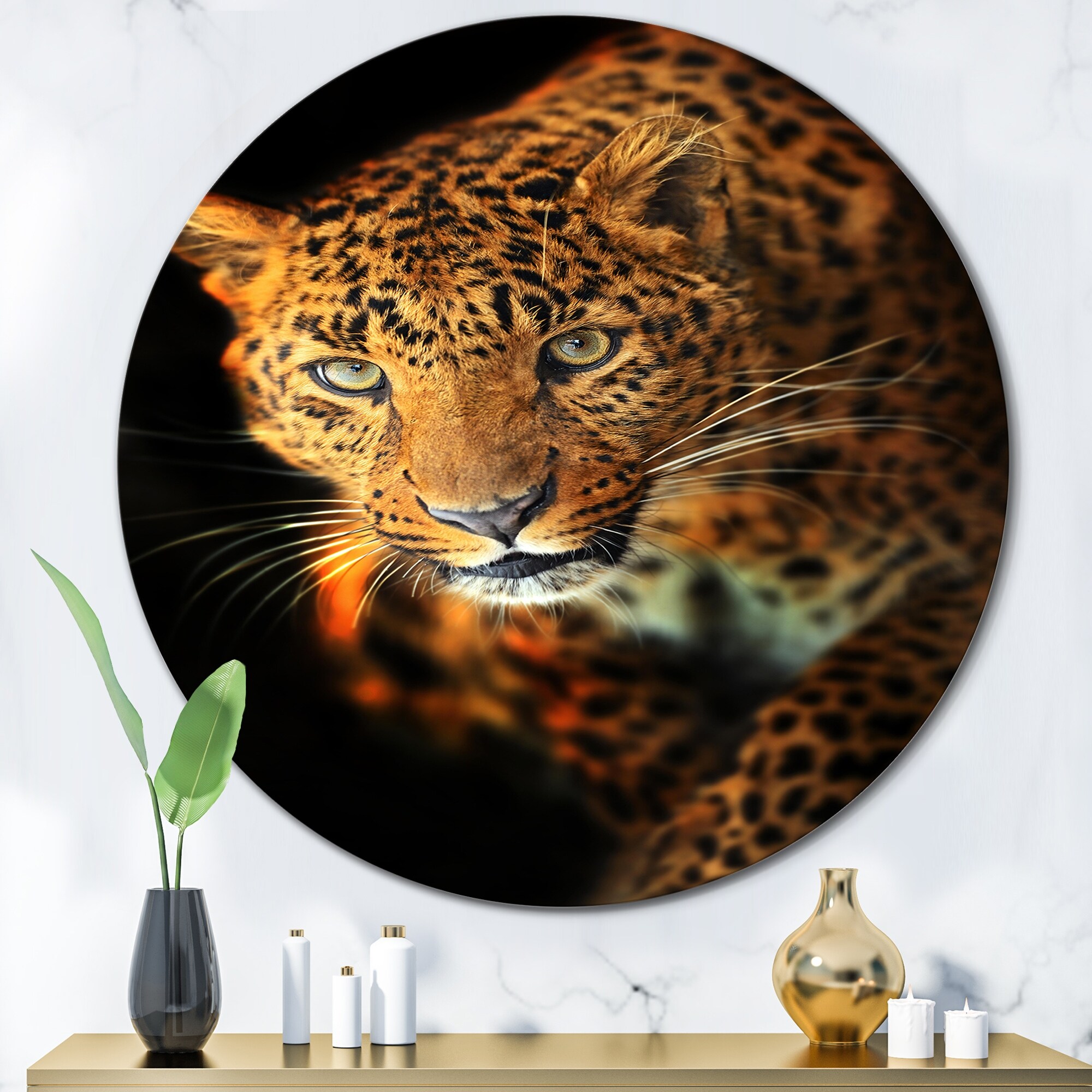 Designart 'Portrait Of a Leopard VII' Traditional Metal Circle Wall Art
