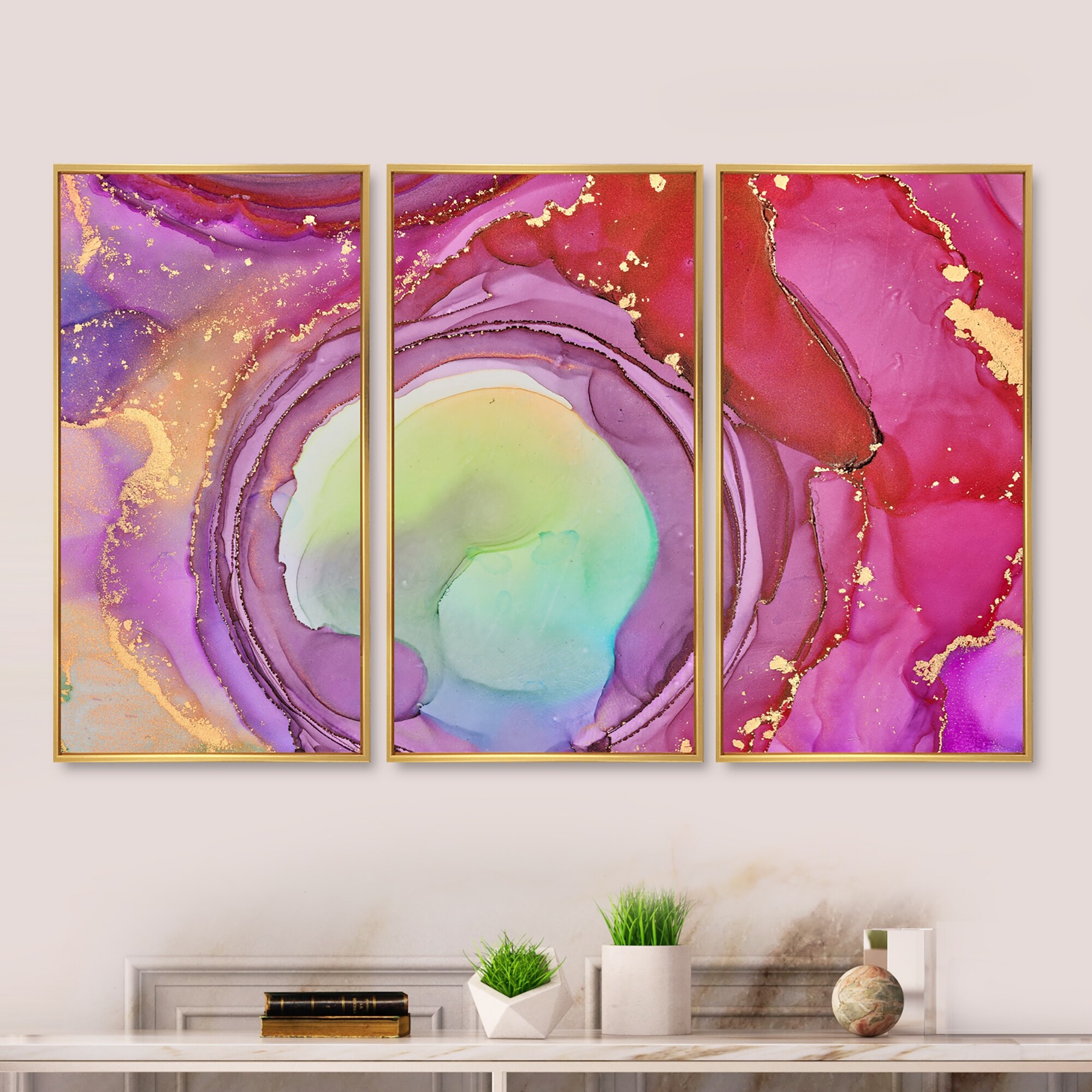 Designart "Purple Luxury Abstract Fluid Art VII" Modern Framed Art Set of 3 - 4 Colors of Frames