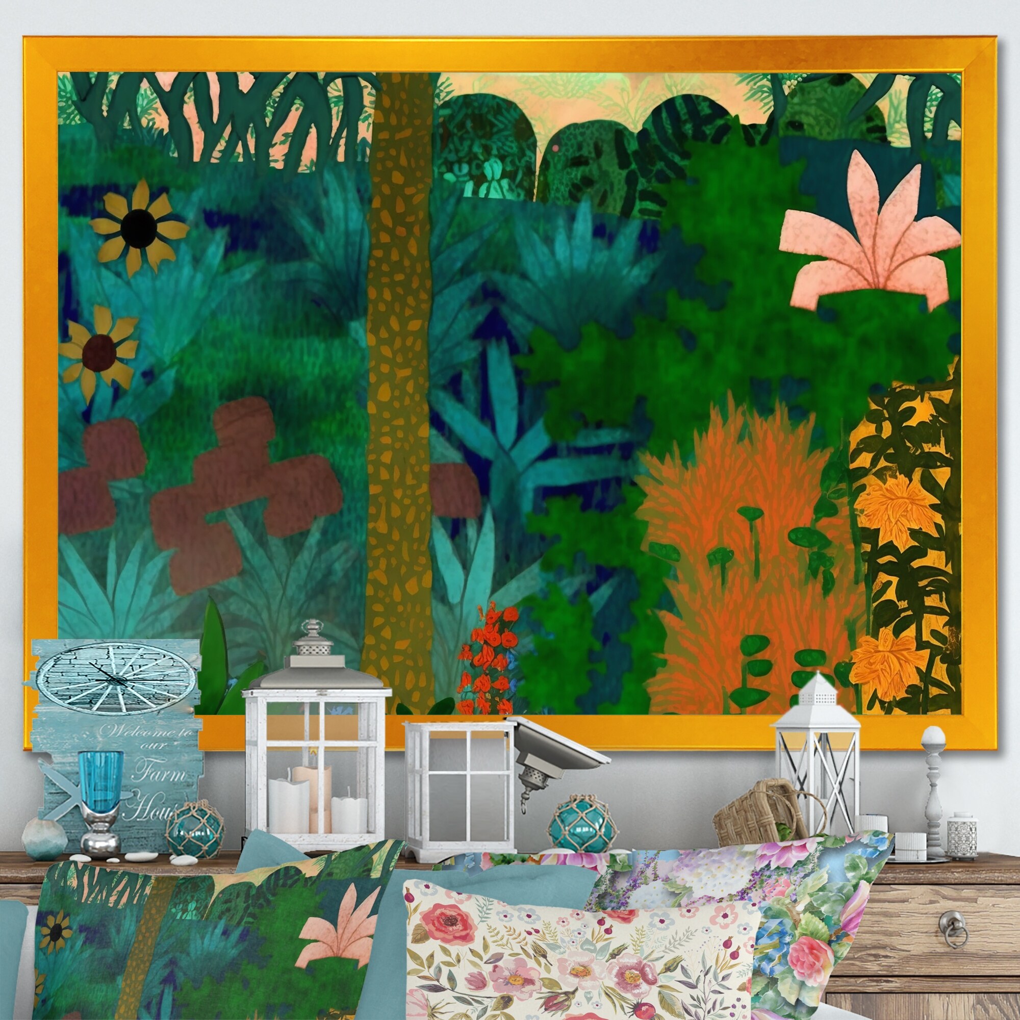 Designart "Blossoming And Vibrant Jungle Flora VII" Floral & Botanical Framed Art Print