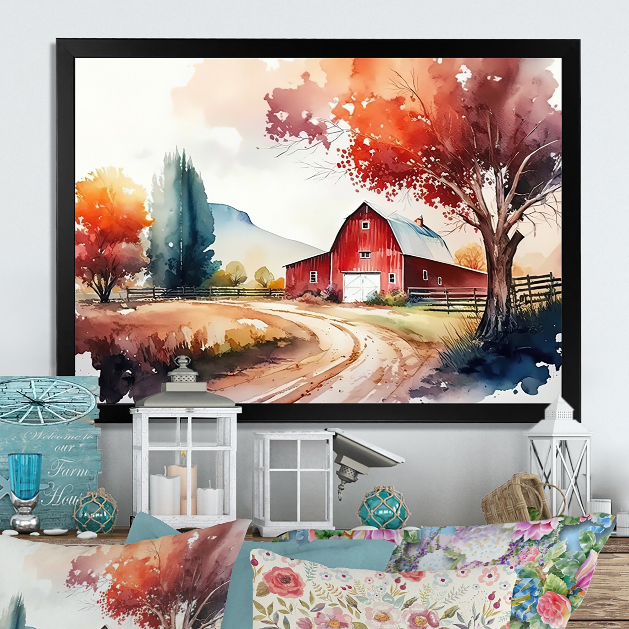 Designart "Calm Red Barn in Spring VII" Farmhouse / Country Framed Art Print