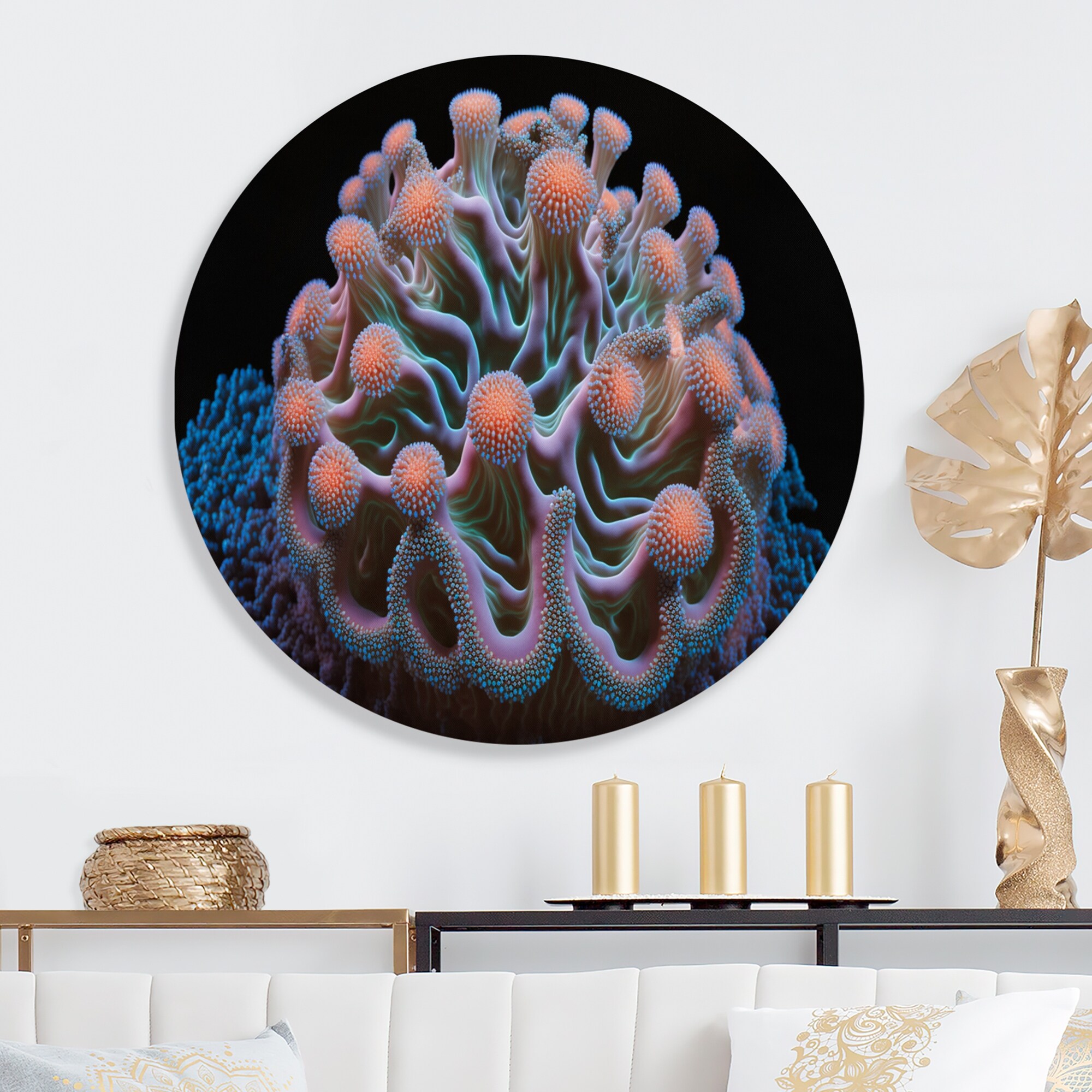 Designart 'Colorful Hyperbolic Deep Sea Coral VII' Traditional Metal Round Wall Art
