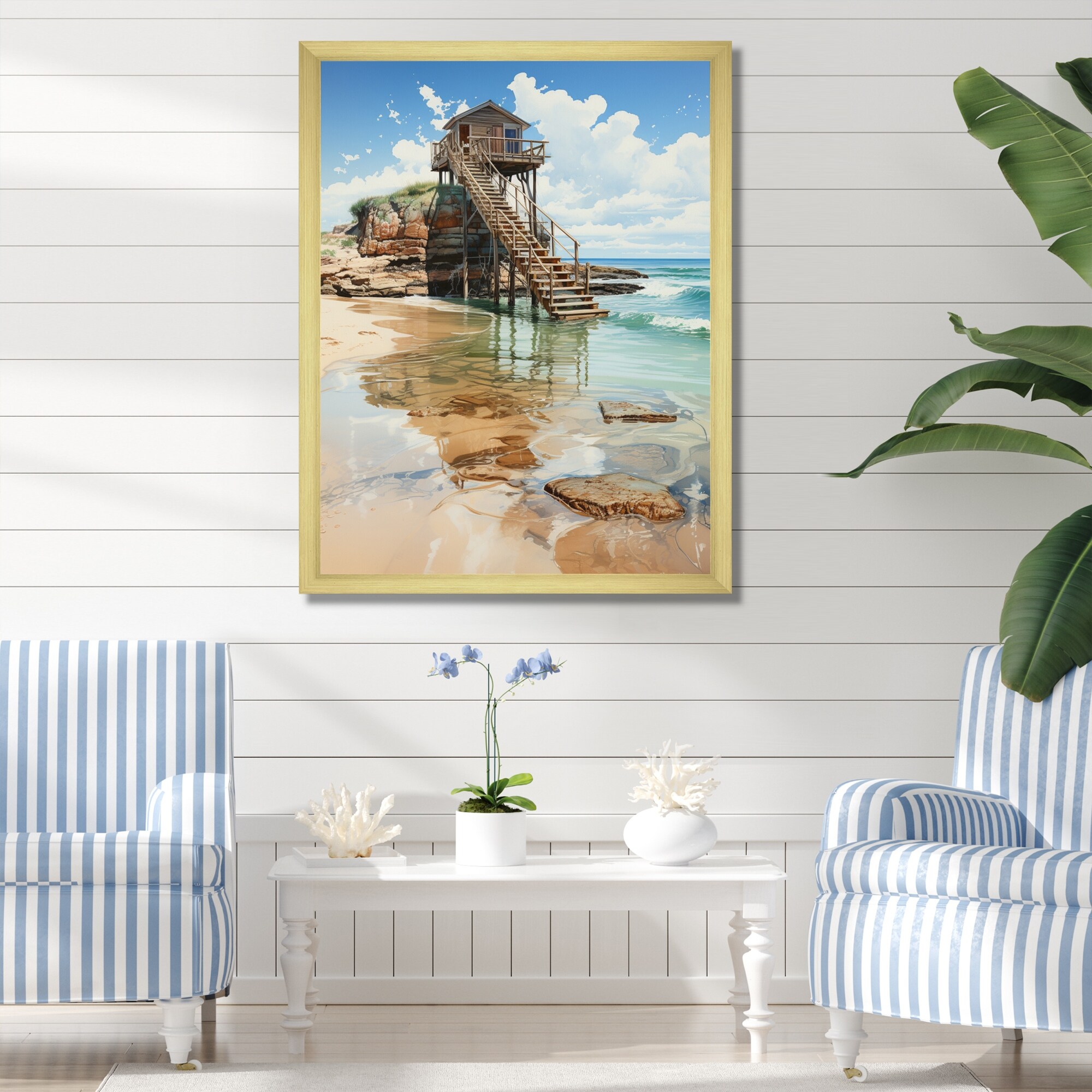 Designart "Beach Photo Seaside Reflections VII" Beach Framed Wall Art Prints