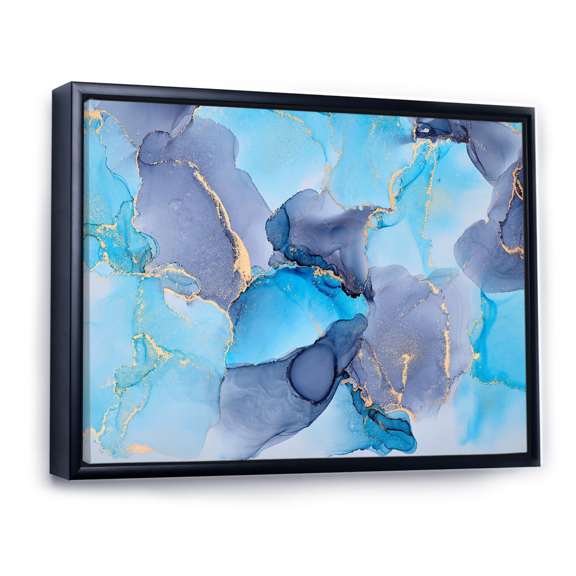Designart "Blue Luxury Abstract Fluid Art VII" Modern Framed Canvas Wall Art Print