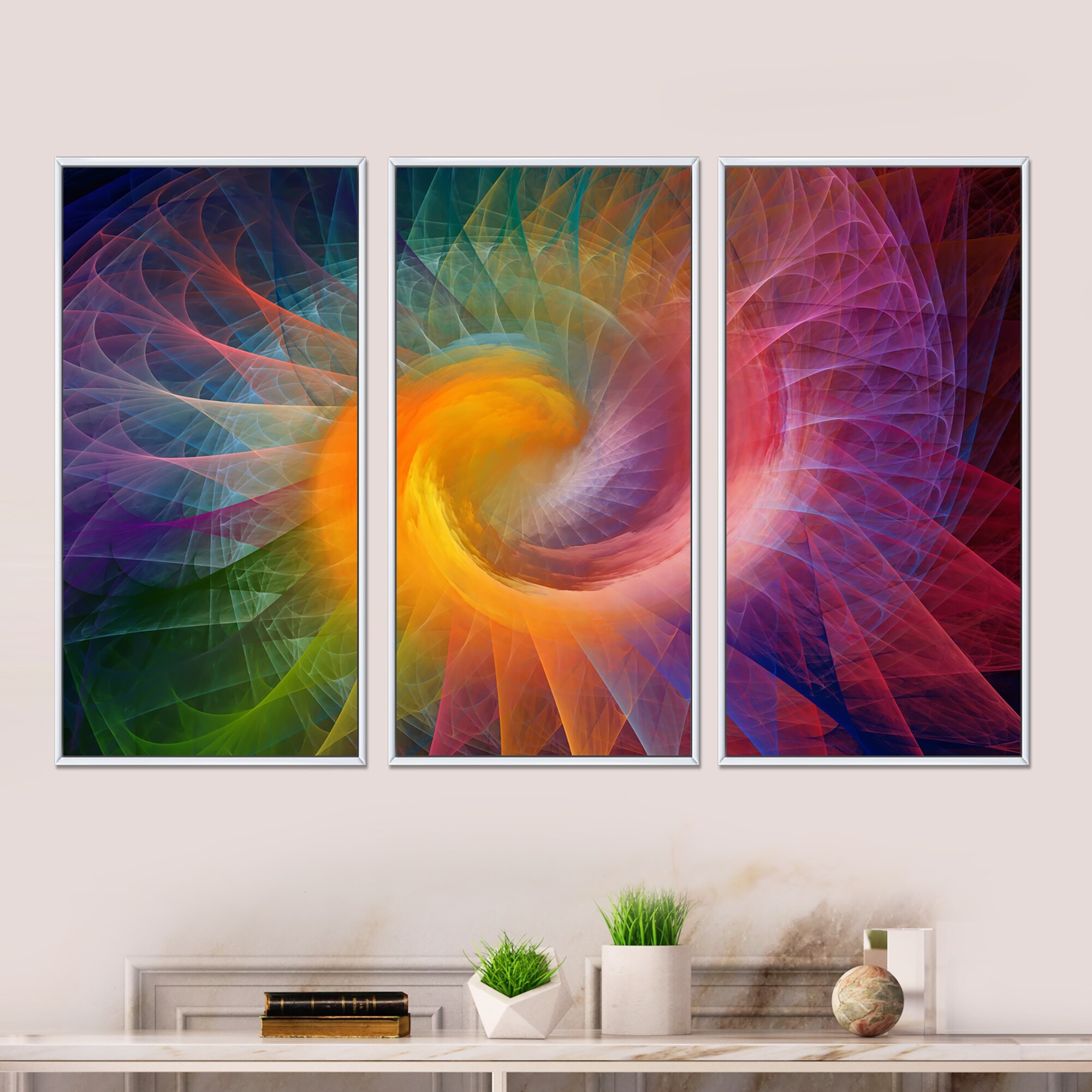 Designart "Spiral Fractal Geometry VII" Modern Framed Wall Decor Set of 3 - 4 Colors of Frames