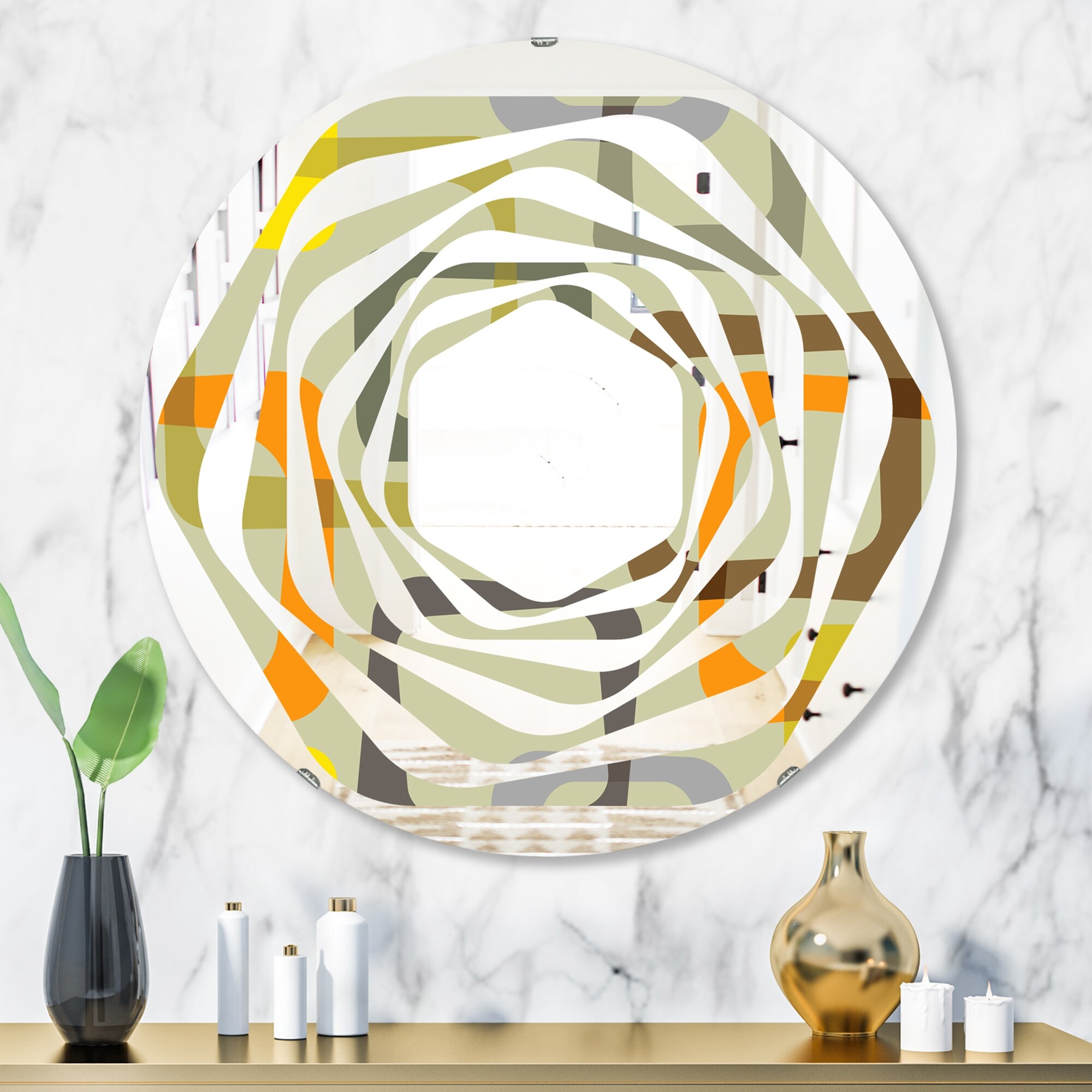 Designart 'Retro Square Design VII' Printed Modern Round or Oval Wall Mirror - Whirl