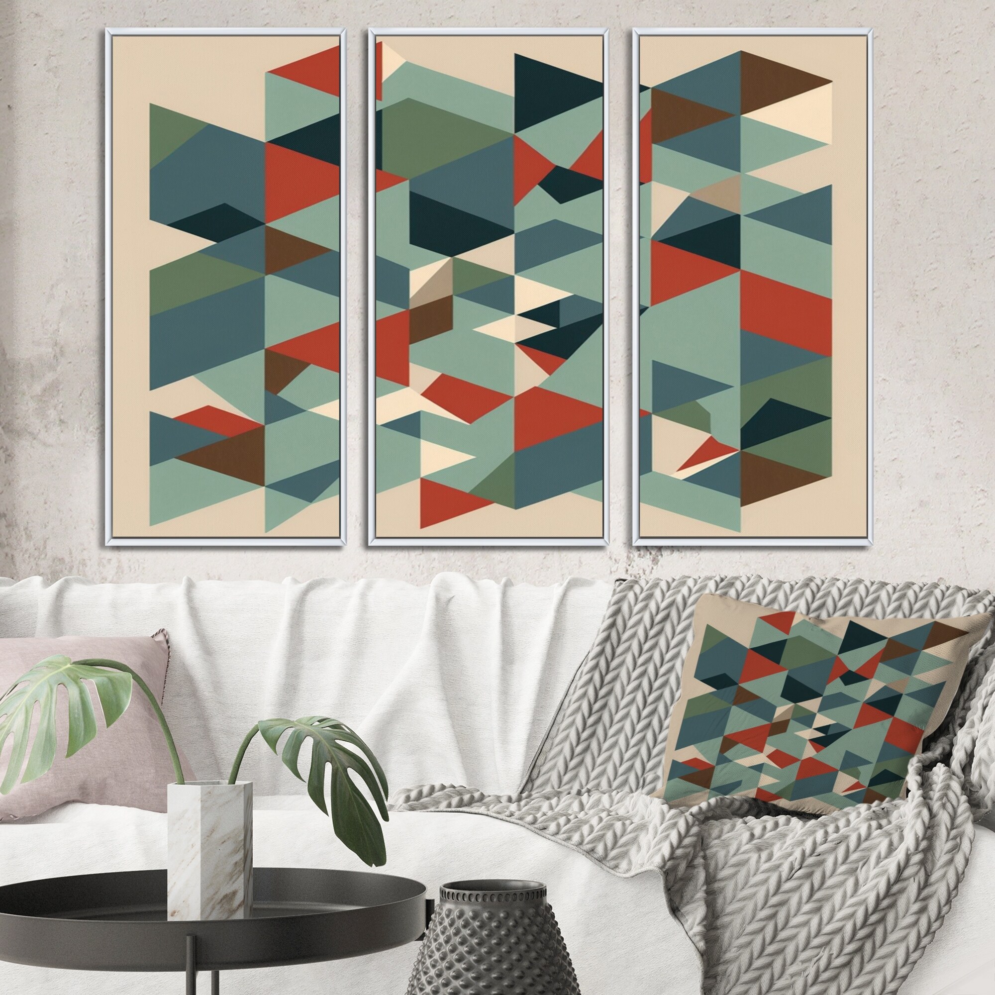 Designart "Mid-century Retro Dimensions VII" Modern Midcentury Framed Canvas Wall Art Print - 3 Panels